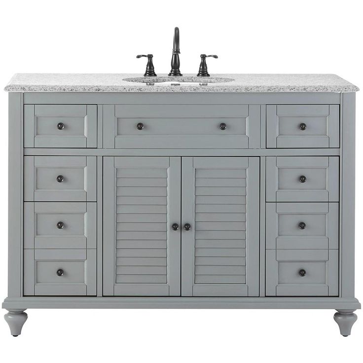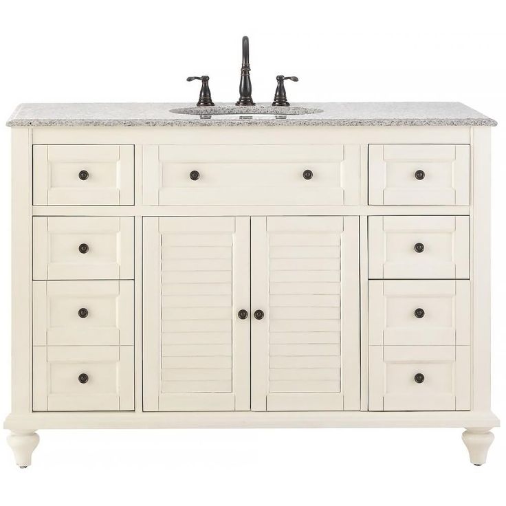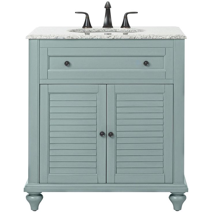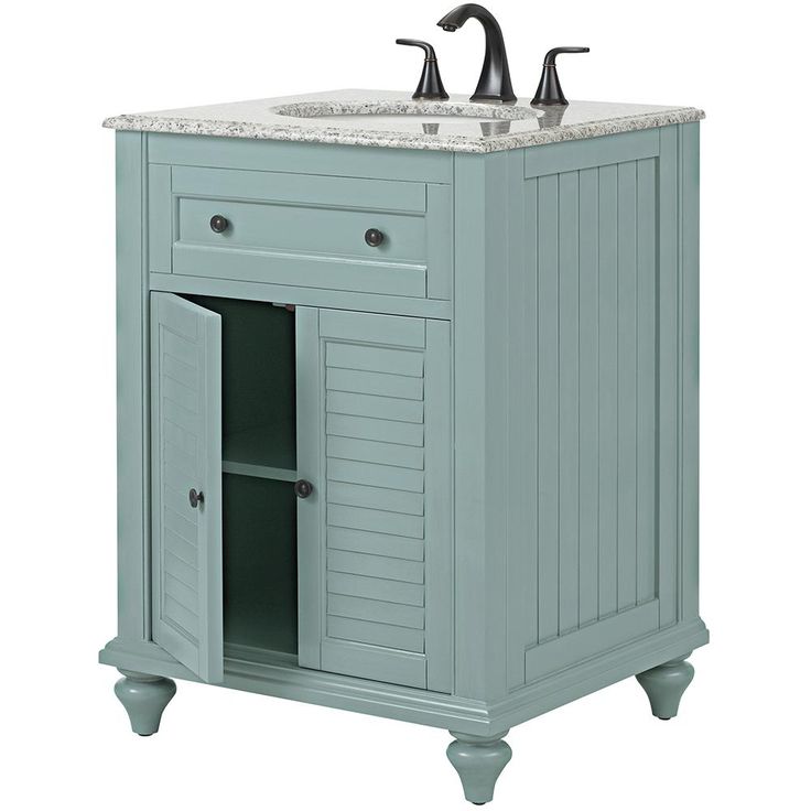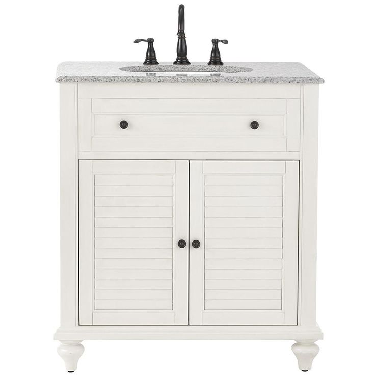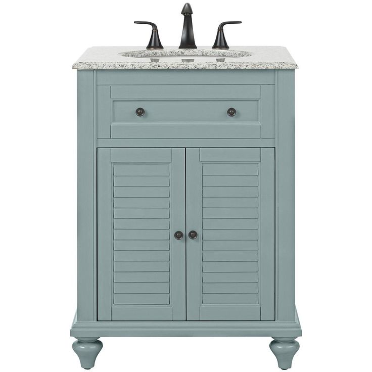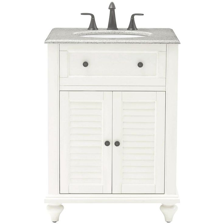 Slip cottage elegance into even the most modest bathroom with our Hamilton 25 in. W Shutter Bath Vanity. Design details include a faux drawer with a recessed panel, louvered doors, subtle trim and turned feet. A granite top adds smooth visual texture. Crafted of real granite, the vanity top may contain swirling or veining. These features are part of the natural beauty of stone and have no effect on function or durability.