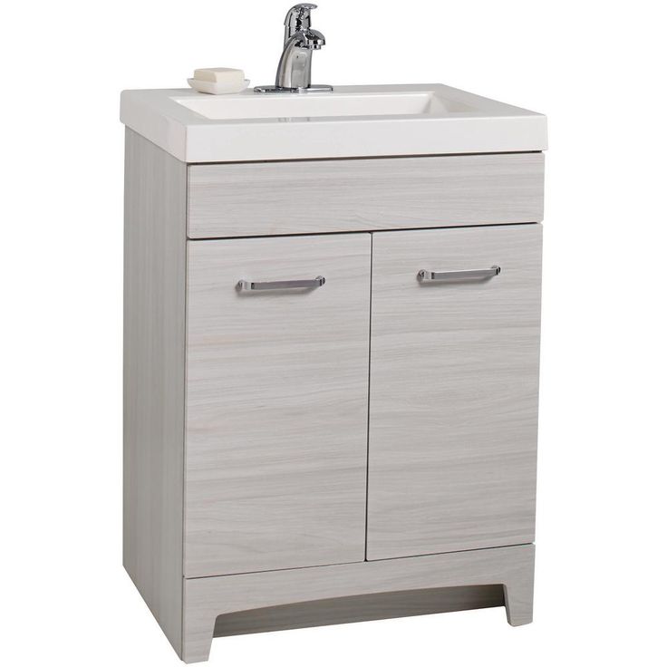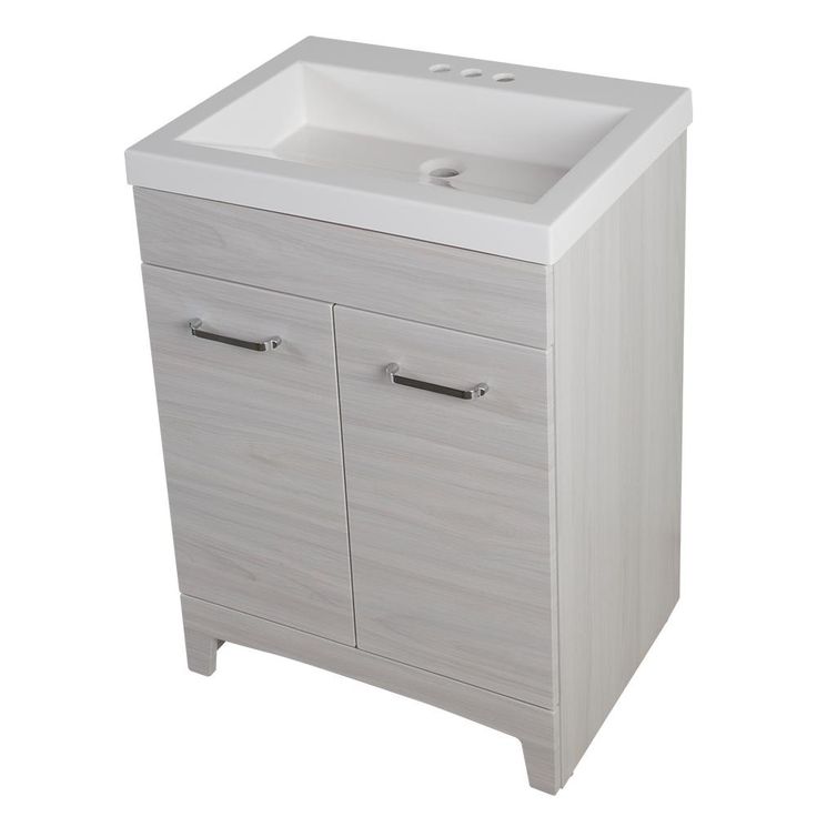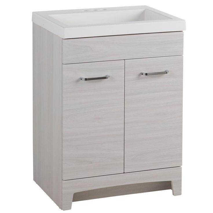 Your bathroom will look fresh and chic after the update with this Glacier Bay Stancliff Vanity. It features 2 flat-slab panel doors with chrome pull. You get plenty of space for your morning routine with the integrated, cultured marble rectangular bowl. The 24.50 in. vanity boasts a light, white-gray finish with a natural wood-grain appearance. You will enjoy the contemporary style in your home after it's installed.