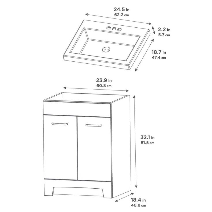 • Assembled dimensions are 24.50 in. W x 18.75 in. D x 34.34 in. H