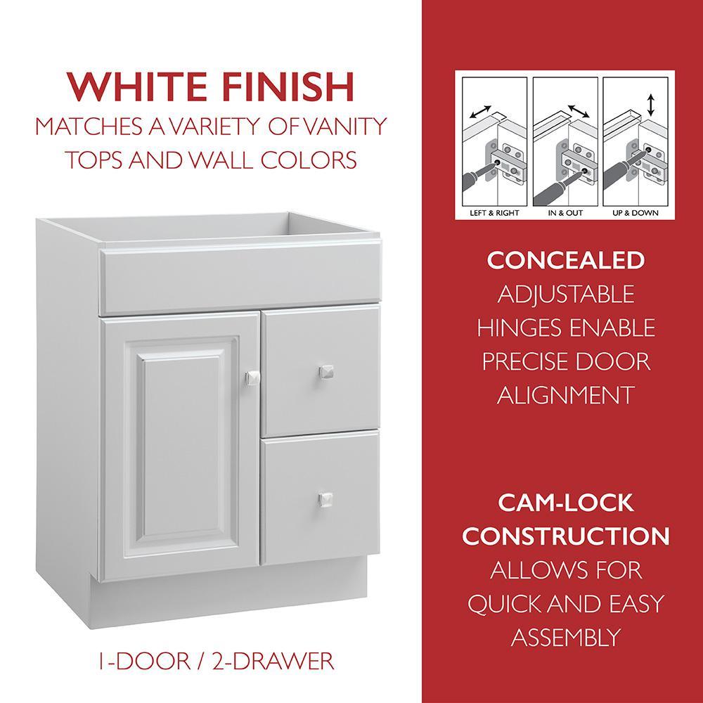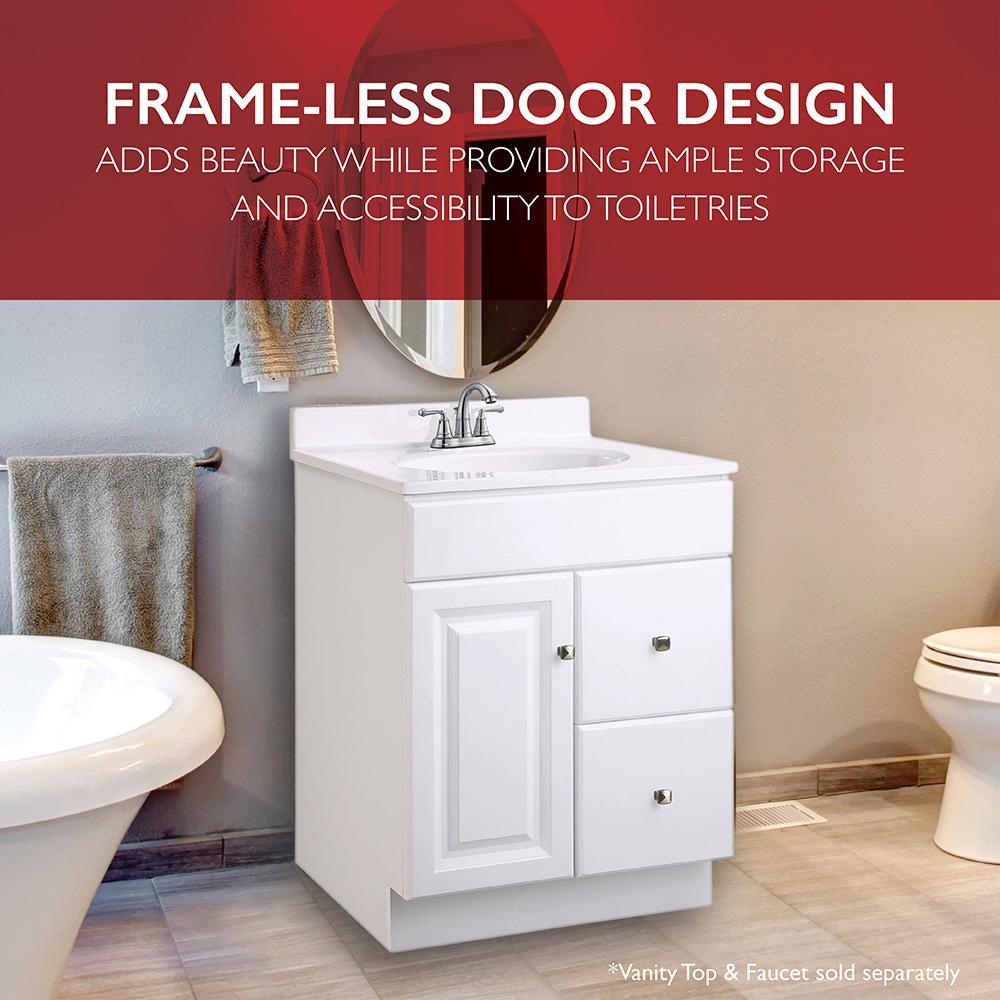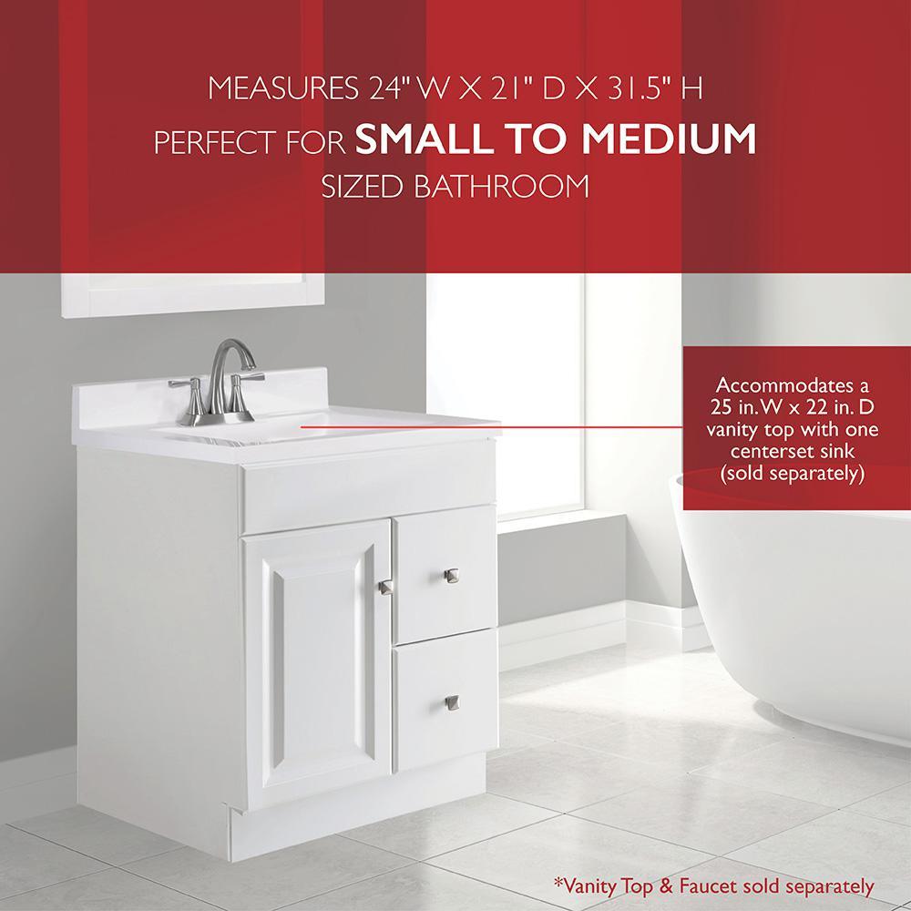 • Accommodates a 25 in. W x 22 in. D vanity top with 1-center set sink (sold separately)