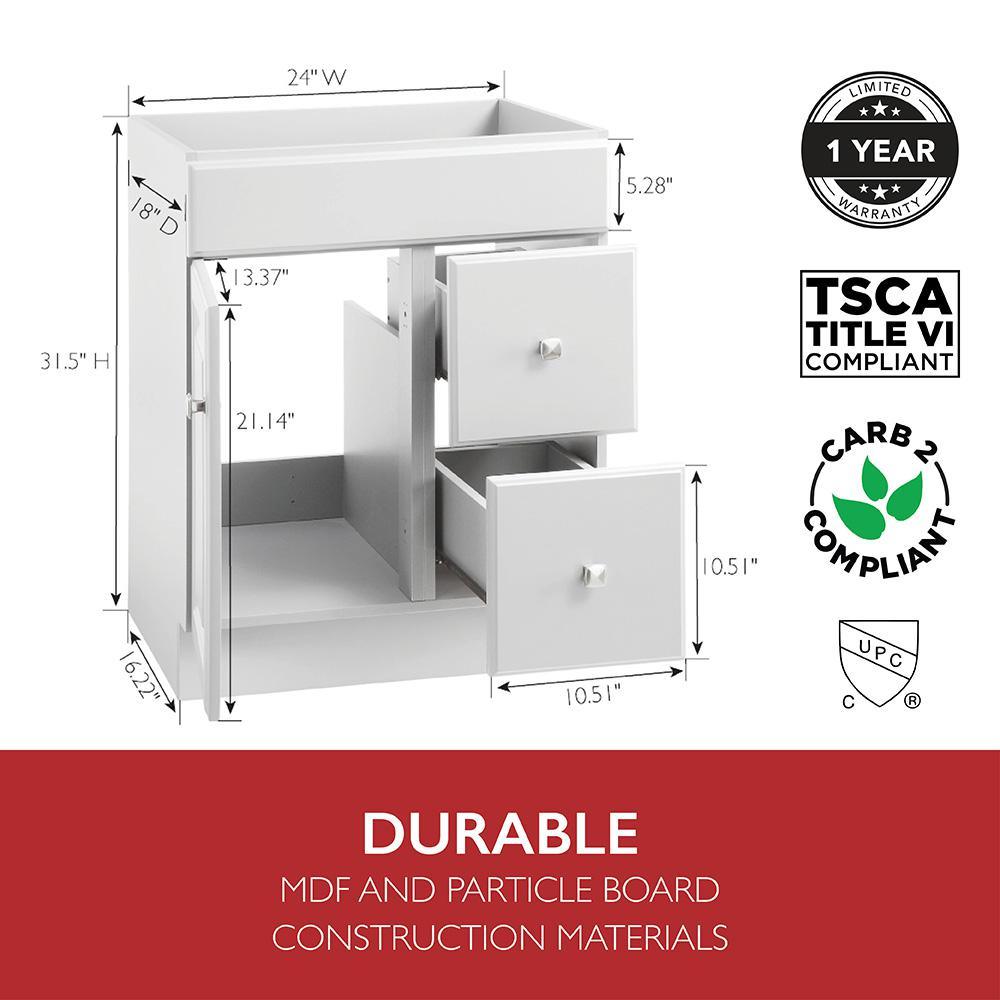 Wyndham 24 in. W x 21 in. D Unassembled Bath Vanity Cabinet Only in White Semi-Gloss