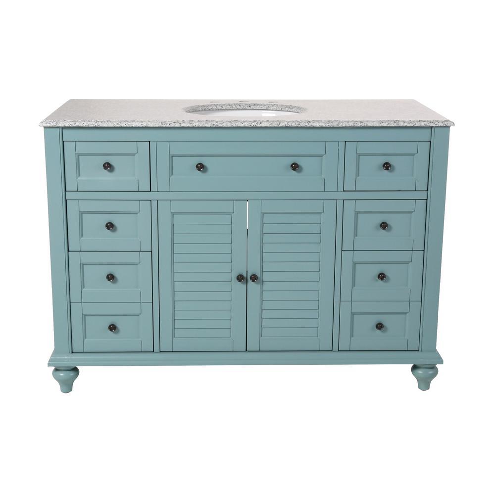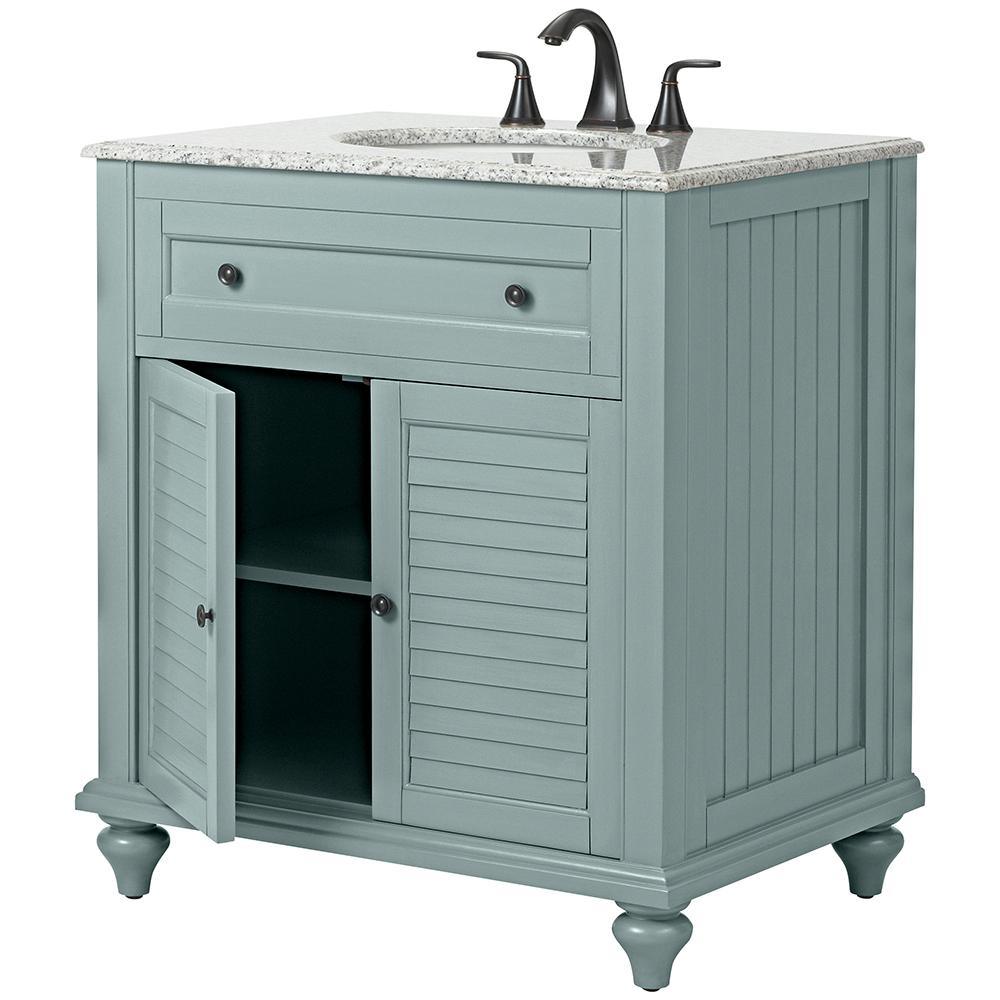 Hamilton Shutter 31 in. W x 22 in. D Bath Vanity in Sea Glass with Granite Vanity Top in Grey with White Sink