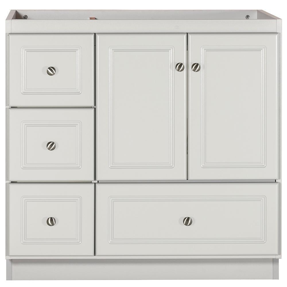 Crafted in the USA and offered in a Dewy Morning finish. This Simplicity by Strasser Ultraline vanity is a solid value with attractive style, attention to detail and quality workmanship. Every one of our vanities maximizes usable storage space and has a unique drawer under the doors. The pre-installed solid cast metal hardware is finished in satin nickel. Doors and drawers close smoothly and keep tightly closed, plus are easily adjusted for exact door and drawer alignment. Vanities, vanitys, medicine cabinets, wall storage in the form of cubbies, overjohns and mirrors make up the Simplicity collection. They are designed to perfectly complement each other so you can create your perfect bath furniture ensemble. Strasser hand crafts the Simplicity brand for homeowners seeking quality bath furnishings that are stylish and budget friendly.