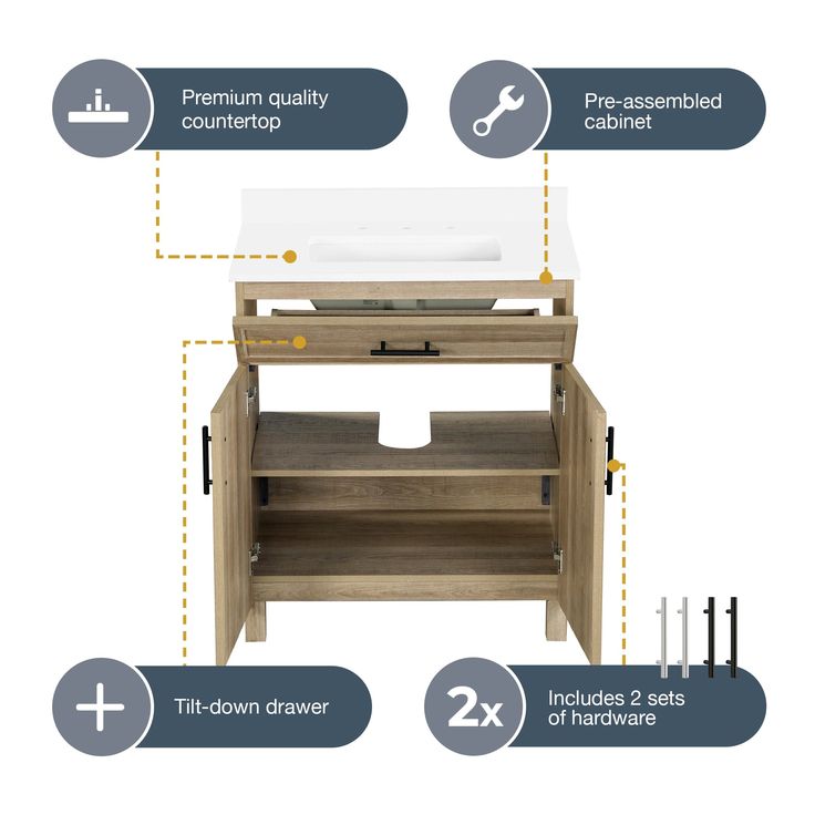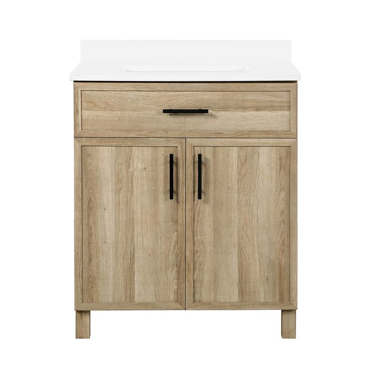 Featuring a beautiful natural oak finish and a durable white engineered stone top, the Style Selections Dolton 30-in bathroom vanity is the perfect addition to your bathroom. The undermount sink adds a sleek and modern touch, while providing ample storage space. Upgrade your bathroom with this elegant and functional vanity.