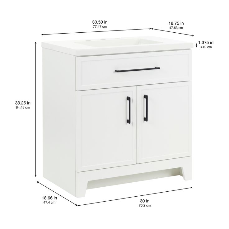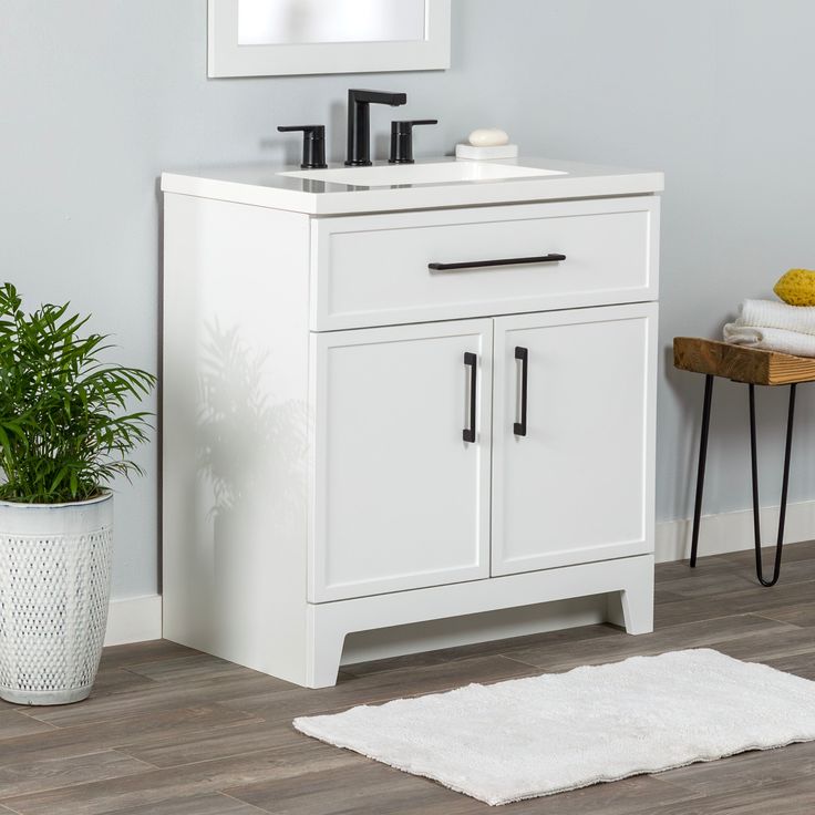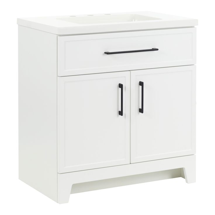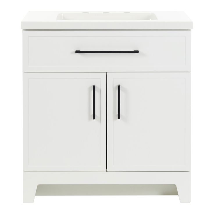 The Style Selections Potter 30-in White Single Sink Bathroom Vanity with White Cultured Marble Top boasts a sleek and modern design. Crafted with durable materials, it offers long-lasting use and easy maintenance. The white cultured marble top adds a touch of elegance, while the single sink provides convenience for daily use. Upgrade your bathroom with this functional and stylish vanity.