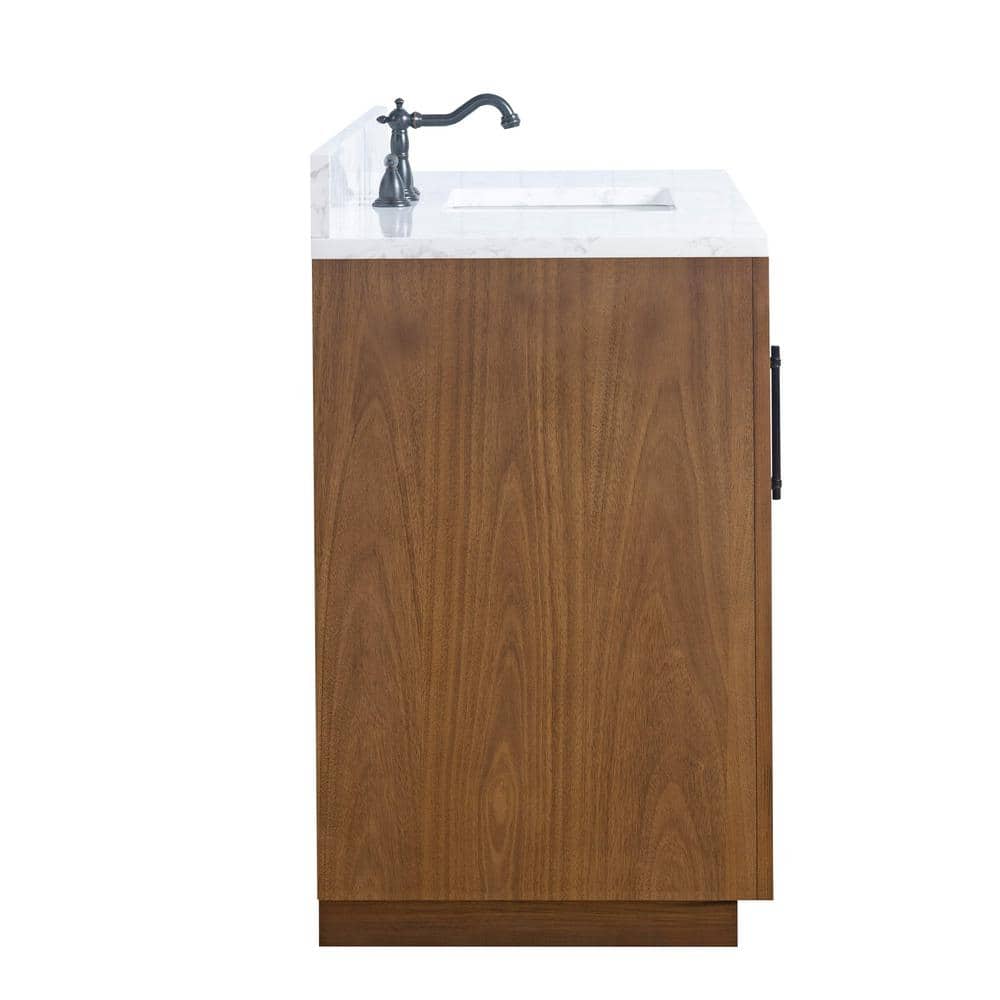 Vanity Art 48 in. W x 21.5 in. D x 34 in. H Single Sink Bathroom Vanity in Tan with Arabescato White Engineered Marble Top
