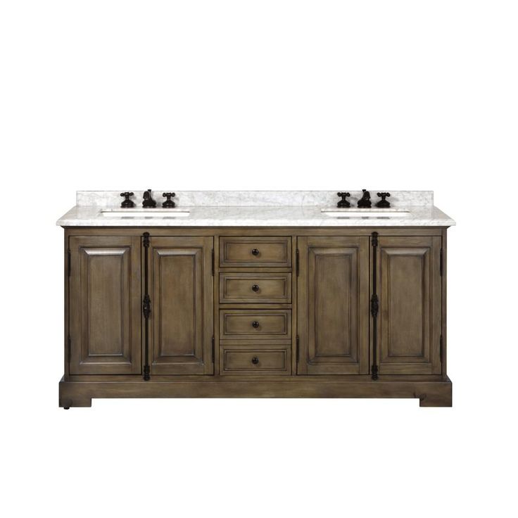 Our Clinton 72 in. Double Vanity melds traditional elegance with modern lines for a look that's strikingly transitional. Right angles form a shallowly stepped pedestal base with block-style feet that give way to a perfectly straight toe kick. Above, classic raised panel doors and drawers are augmented by elegant iron hardware. This unique double sink cabinet is topped off with real Italian Carrara marble. Any swirling or veining present is part of the natural beauty of stone and has no effect on function or durability.