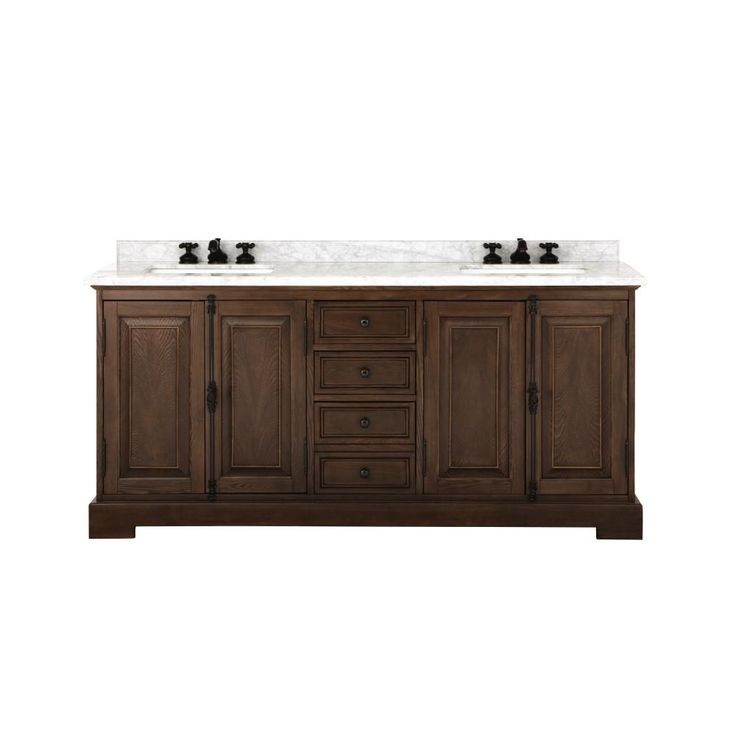 Clinton 72 in. W Double Vanity in Antique Coffee with Natural Marble Vanity Top in White with White Sink