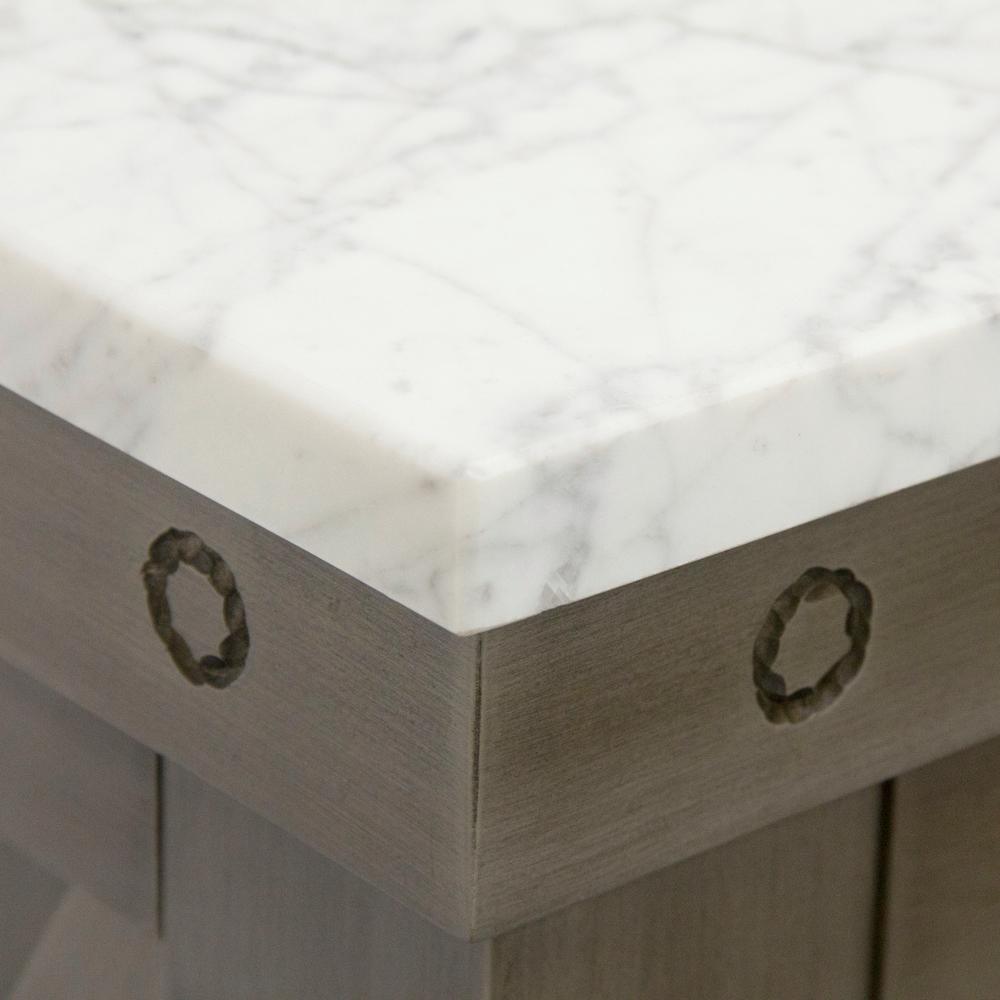 • 1 in. T carrara white marble countertop, 1 solid piece, seamless