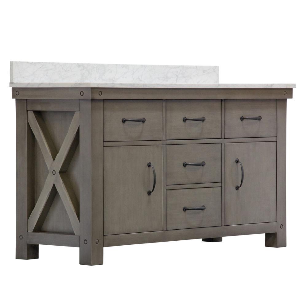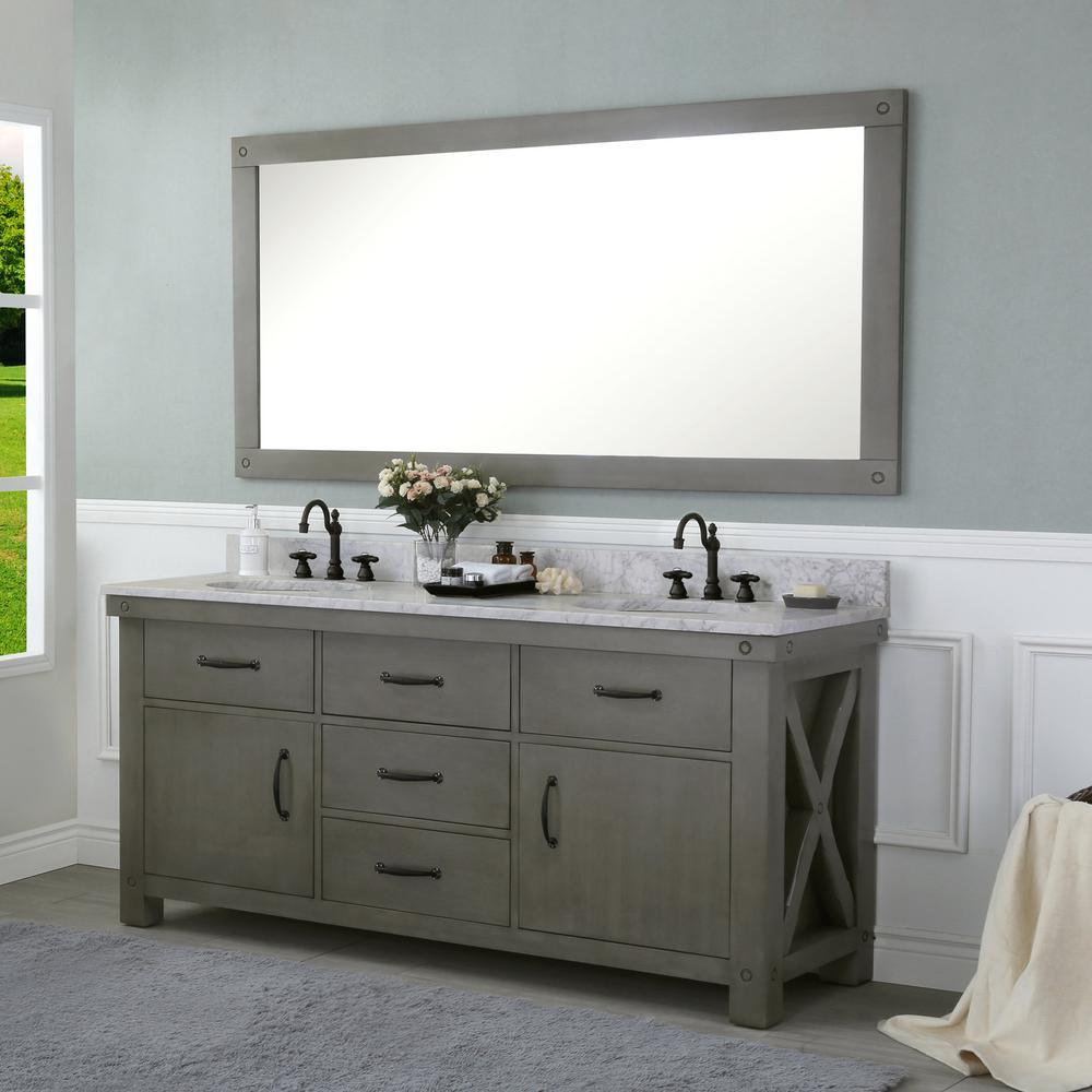 Aberdeen 72 in. W x 34 in. H Vanity in Gray with Marble Vanity Top in Carrara White with White Basins