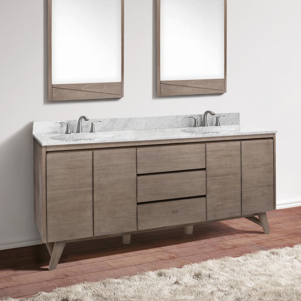 Inspired by mid-century modern console design, the Coventry Collection from Avanity features solid teak construction with minimal ornamentation. The 72 in. gray teak Coventry features soft-close doors and drawers, sturdy and stylish splayed legs and an abundance of storage space. Teak is the perfect material for bathroom furniture, as it is both durable and water resistant. With Coventry form follows function with superb simplicity.