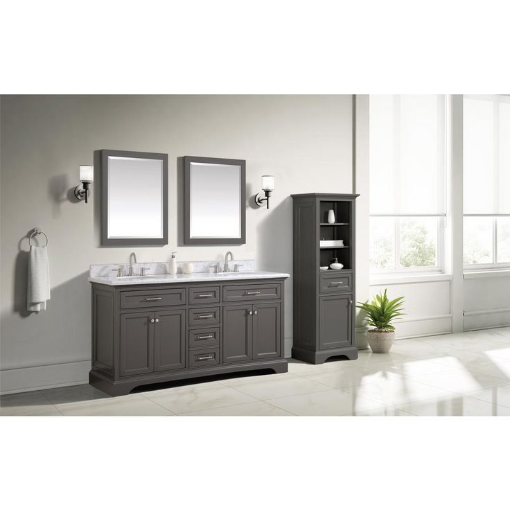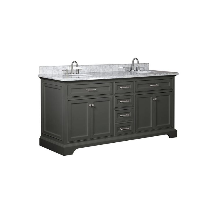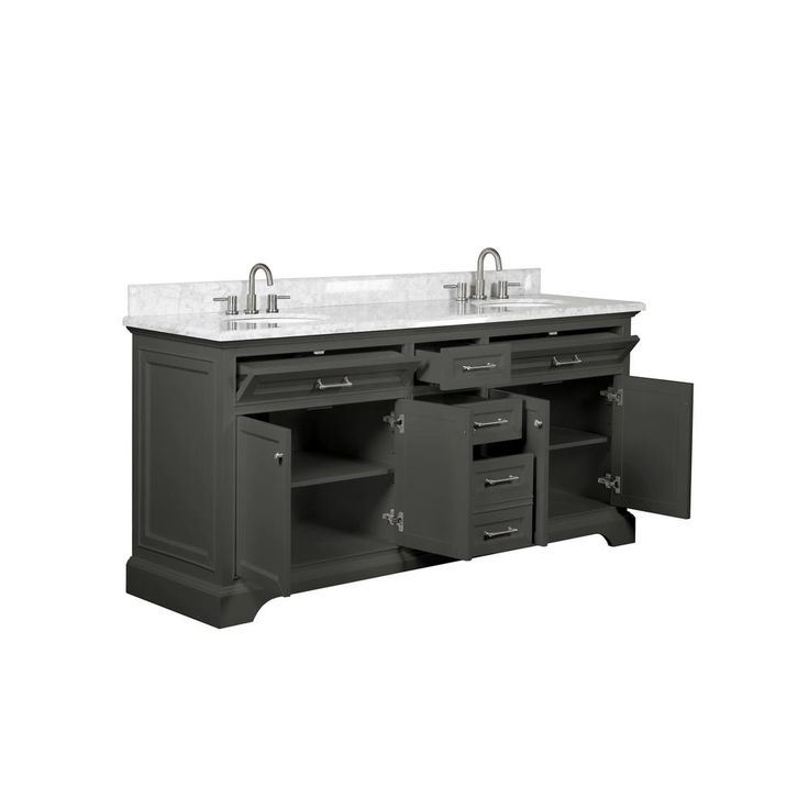 The Windlowe Collection features classical design enhanced by a smooth Gray finish, creating an aesthetic that mixes flair and function. The Windlowe 73 in. double vanity showcases its quality and style with a solid wood frame, brushed nickel hardware and soft-close hinges and glides. The vanity combo includes a Carrara white marble top and white vitreous China undermount oval sinks.