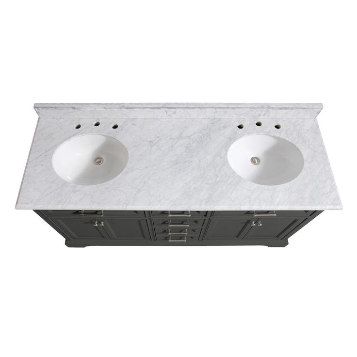 Windlowe 73 in. W x 22 in. D x 35 in. H Bath Vanity in Gray with Carrara Marble Vanity Top in White with White Sink