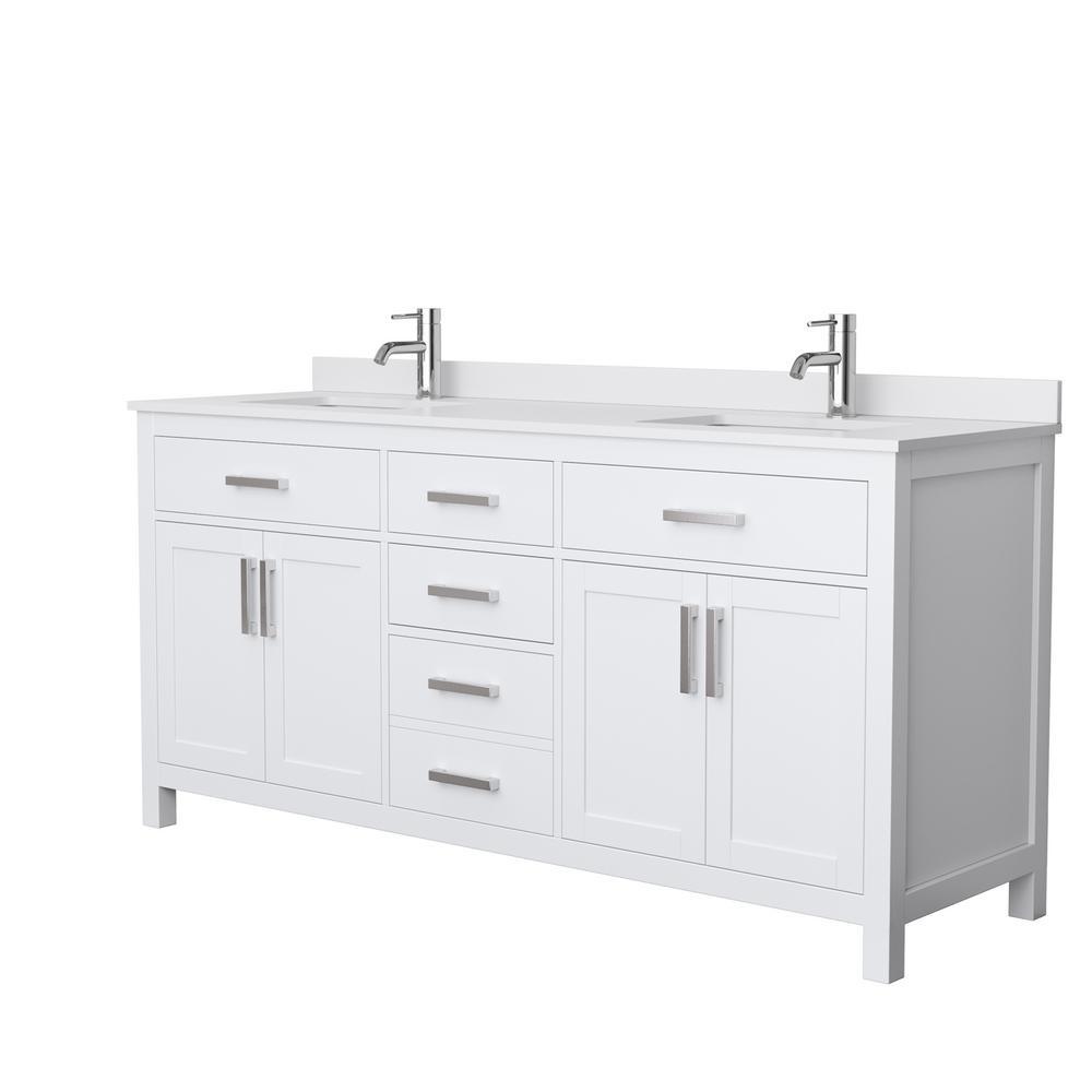 Beckett 72 in. W x 22 in. D Double Bath Vanity in White with Cultured Marble Vanity Top in Carrara with White Basins
