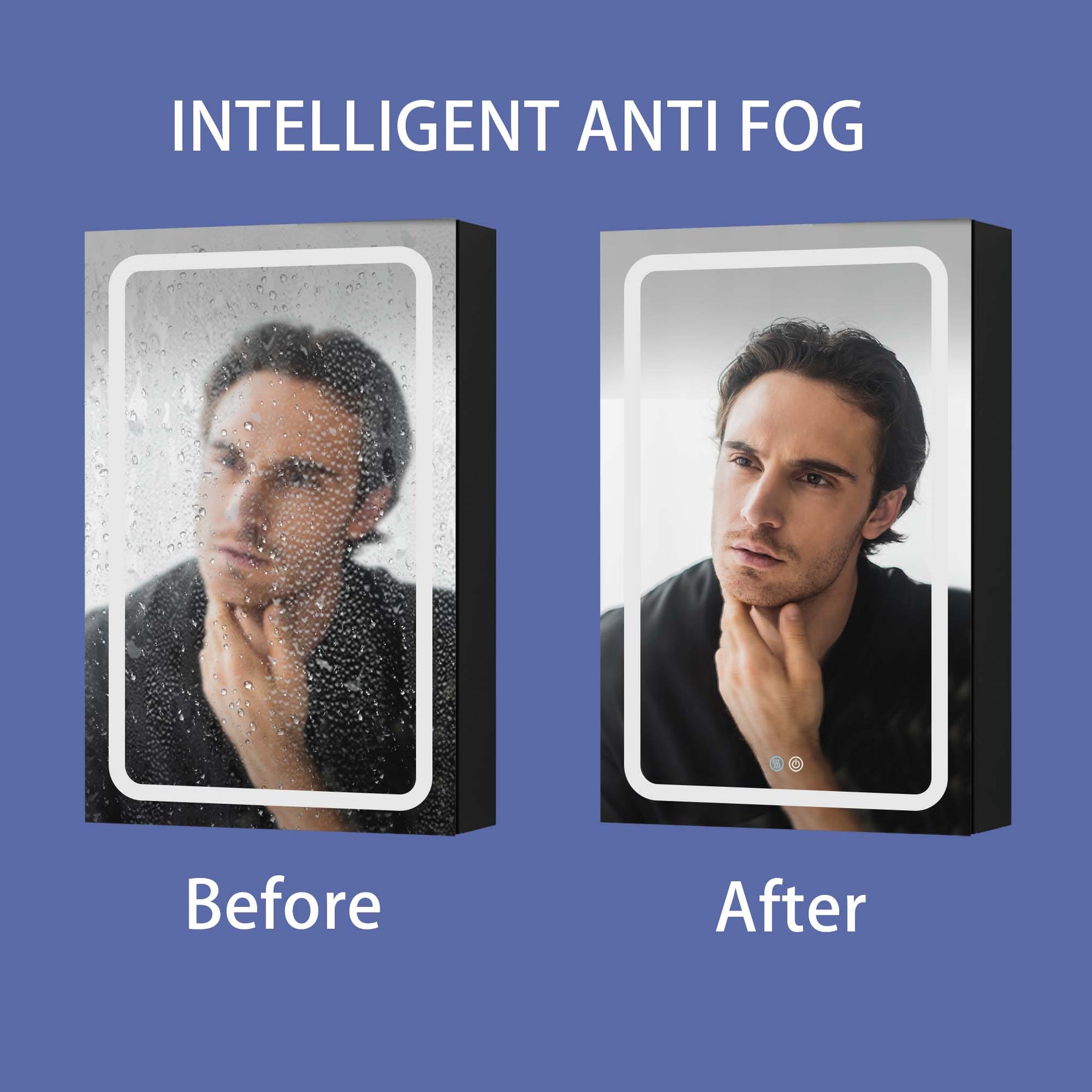 AAZJ 30-in x 20-in LED Fog Free Surface/Recessed Mount Black Mirrored Soft Close Medicine Cabinet