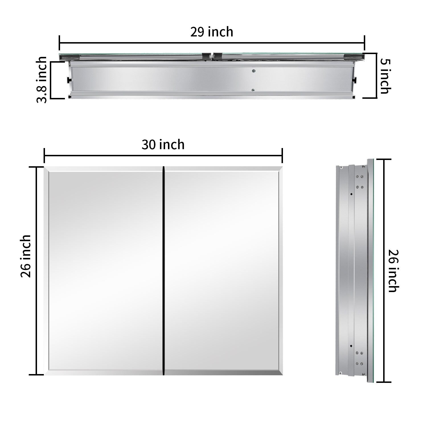 Enhance your bathroom's elegance and functionality with this 30x26-inch surface/recessed mount medicine cabinet. Crafted from polished aluminum, it features a sleek soft close mechanism and a frameless mirrored door for a modern aesthetic, complemented by adjustable glass shelves for customized storage solutions.