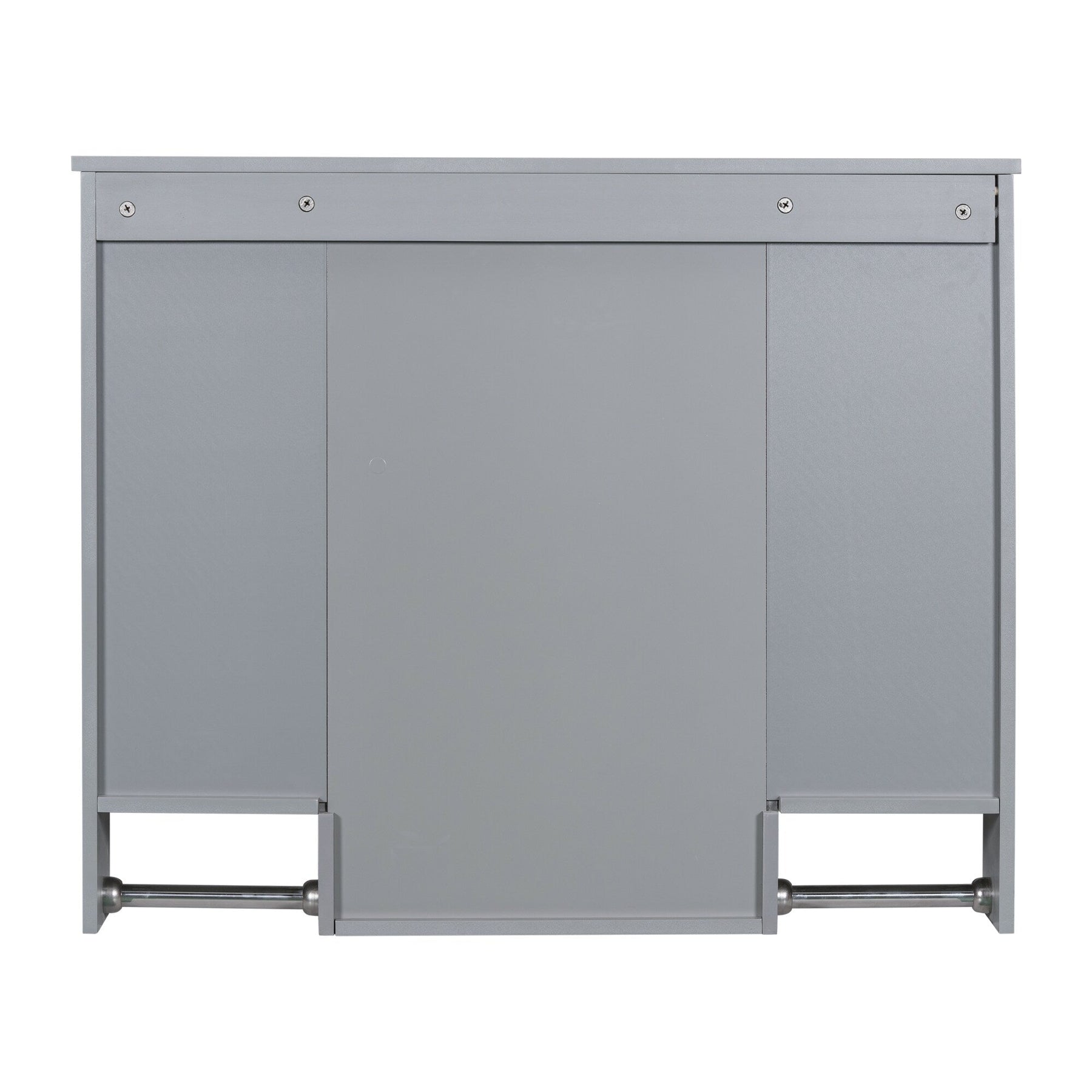 Elevate your bathroom decor with the AAZJ Surface Mount Medicine Cabinet, featuring a sophisticated grey mirror design that seamlessly integrates style with functionality. With crafted MDF durability, it includes soft-close hinges for a quiet, smooth experience and ample interior space to organize essentials with ease.