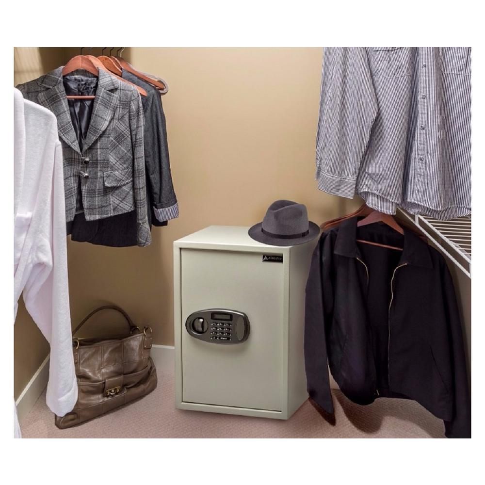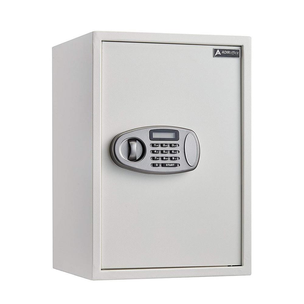 The AdirOffice 2.32 cu. ft. Security Safe with Digital Lock allows you to experience the peace of mind that comes with knowing your prized and important possessions are safe and protected. Built using solid, pry-resistant steel, this safe offers rugged reliability and long-lasting strength for years to come. On the inside, a soft carpeted floor furnishes an added layer of protection, ensuring jewelry, heirlooms or other delicate items are safeguarded against scratches or damage. The safe is equipped with an electronic lock and comes with 2 AA batteries for quick set-up and easy operation. You can program the safe with your own unique passcode, providing authorized users with quick access inside. In addition to the electronic lock, the safe features 2 live-door bolts, a pry-resistant steel door and pry-resistant concealed hinges.