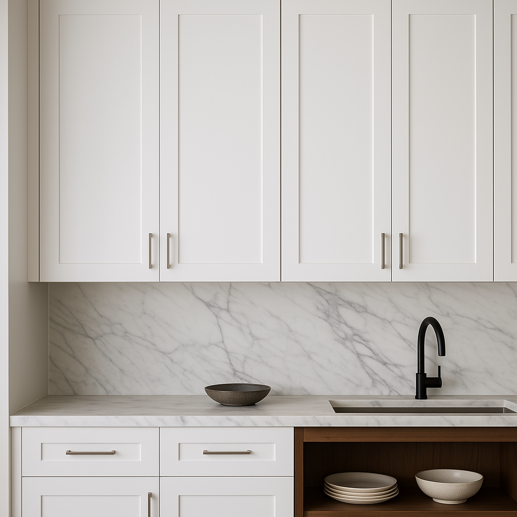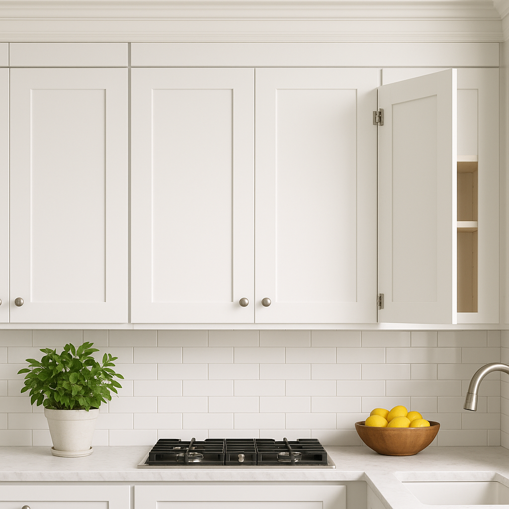 • Elegant Design: Shaker style with painted white finish.