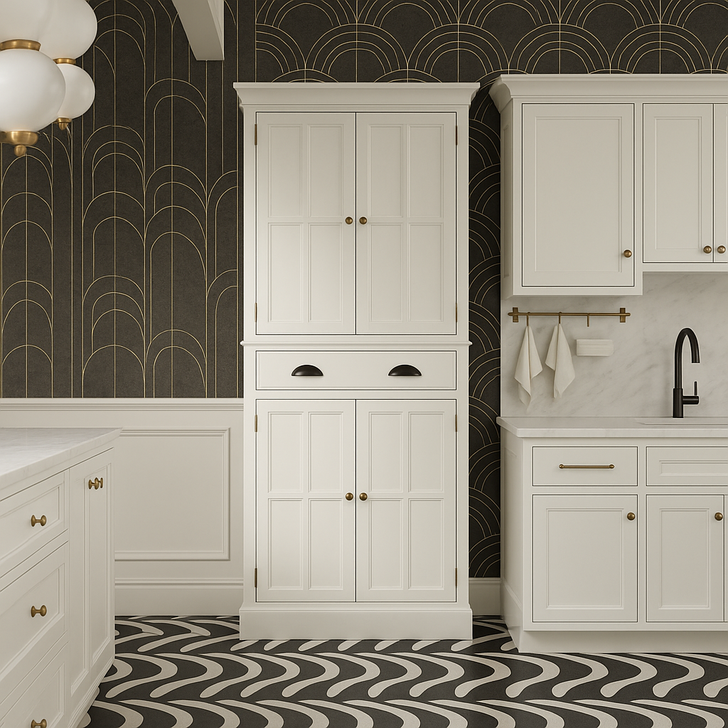 This cabinet is a masterpiece of functional design and aesthetic appeal. Its white field-character finish and vintage handles bring a touch of modern sophistication to any space. Perfect for organizing kitchen essentials or showcasing decorative items, it transforms storage into an art form. Pair it with sleek countertops or rustic decor for a harmonious blend of style and utility.