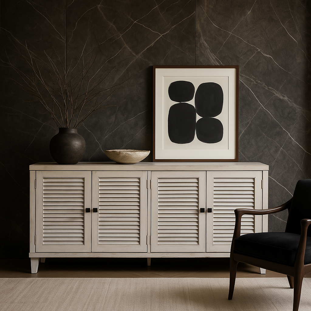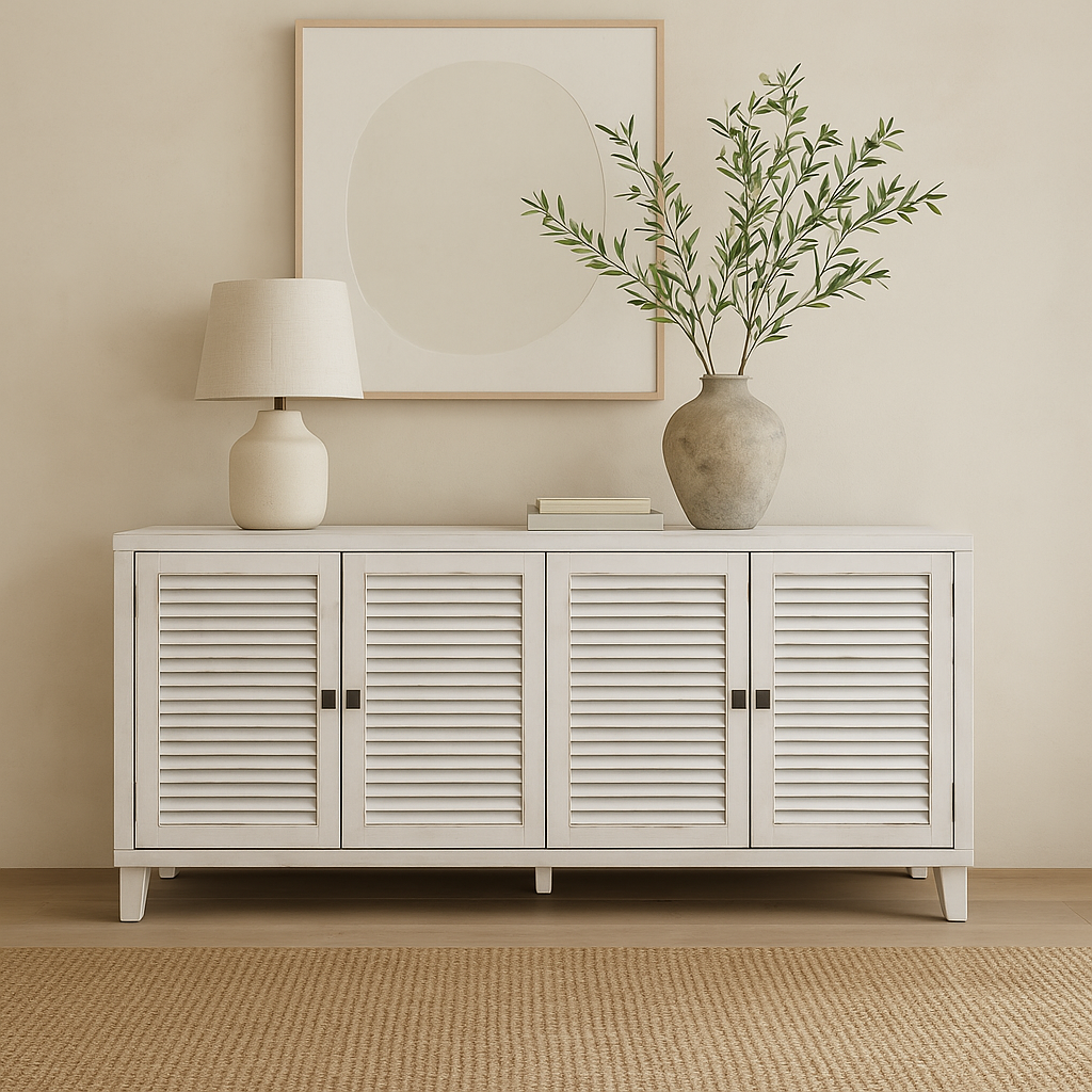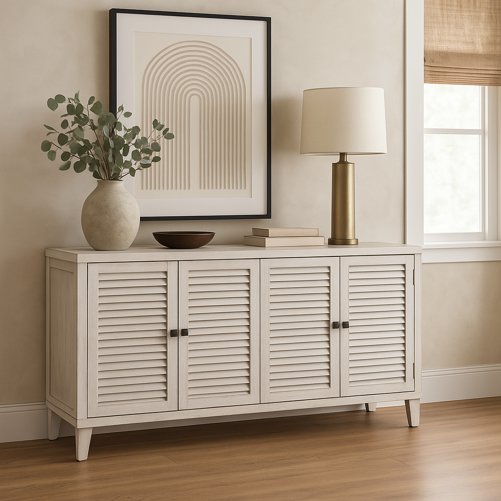 - Stylish Design: Features louvered doors and metal handles for a rustic yet modern look.