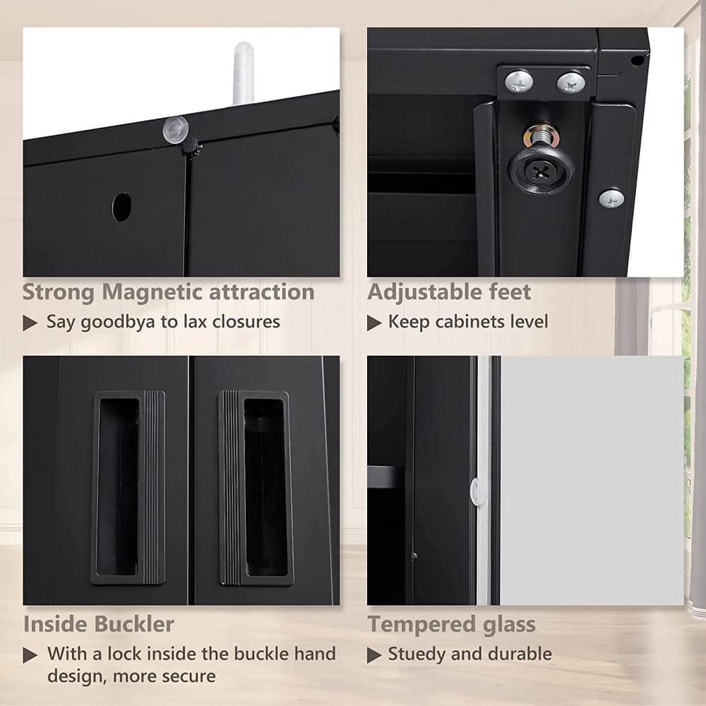 • Tempered Glass: High-definition glass doors for easy visibility of stored items.