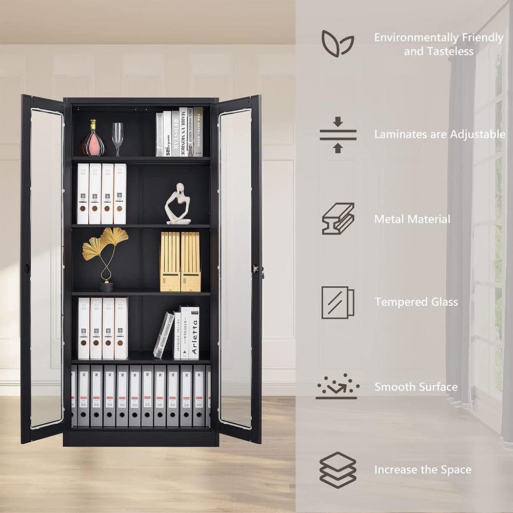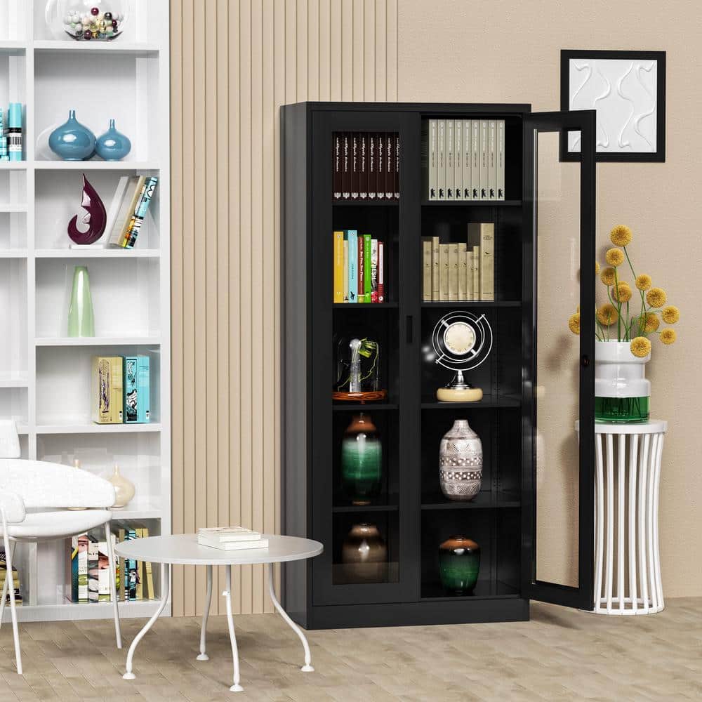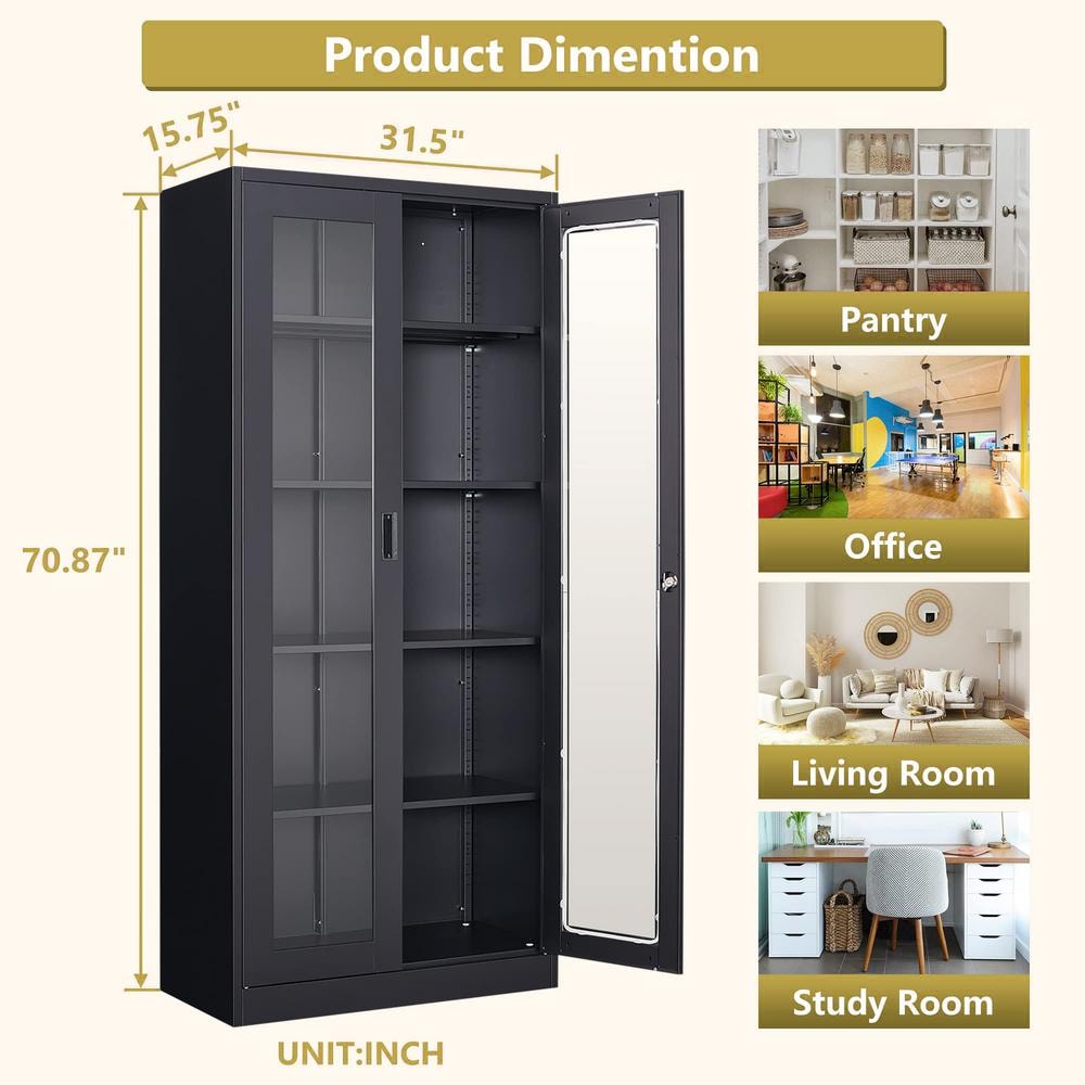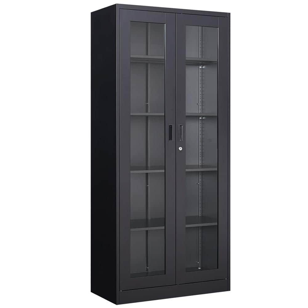 LISSIMO 31.5" W x 70.87" H x 15.75" D Steel Storage Freestanding Cabinet with Glass Door and 4 Adjustable Shelves in Black