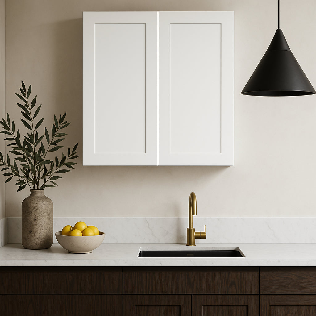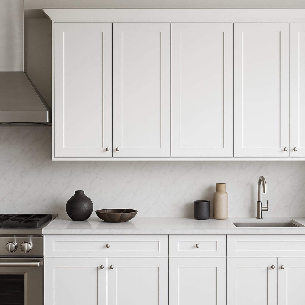 • Stylish Design: Shaker-style doors with a clean white finish.