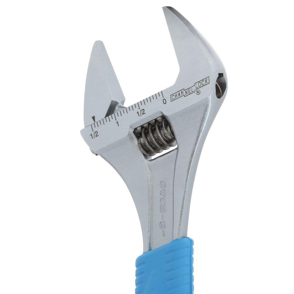 Regular price $25.41A convenient size indicator on the jaw of this Channellock 8 in. Code Blue Wide Azz Adjustable Wrench makes for quick and easy adjustments while tightening fasteners. The 8WCB WideAzz Adjustable Wrench has longer jaws that grip better avoiding slippage or nut round off. The jaws and head of the 8WCB are also thinner for improved performance in confined spaces.