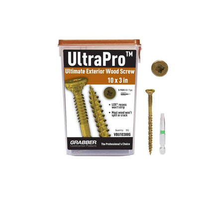 #10 x 3 in. UltraPro LOX 2 Drive, Flat Scavenger II Head, GrabberGard Gold, Exterior Wood Screws (5 lb. box)