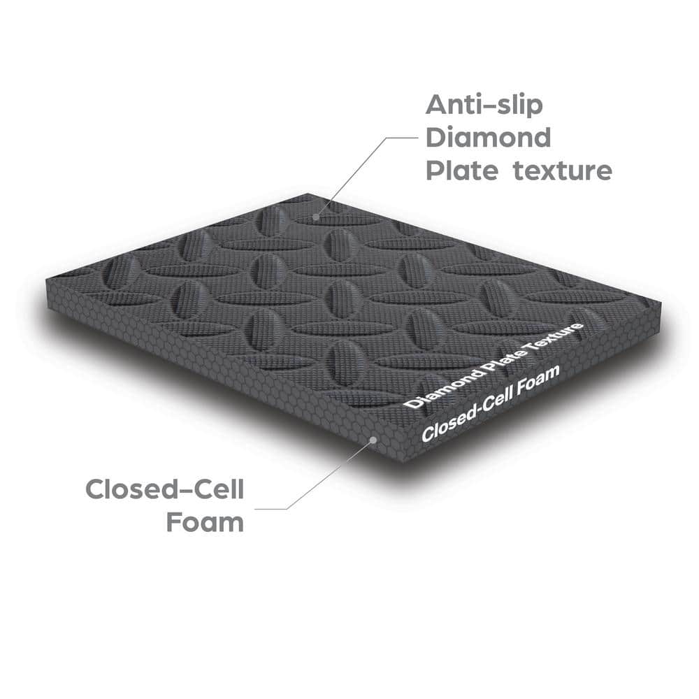 Transform hard floors into cushioned, protective surfaces with Norsk Duraflex Lite interlocking foam tiles. The 24 in. x 24 in. diamond-plate textured tiles feature closed-cell foam for slip resistance, impact protection, and easy, adhesive-free installation. Ideal for home gyms, garages, workshops, and play areas.
