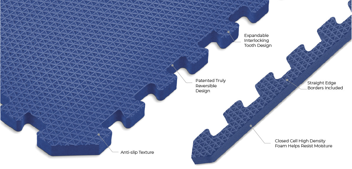 • Reversible Design: Patented truly reversible tiles with double-sided anti-slip texture for versatile layouts