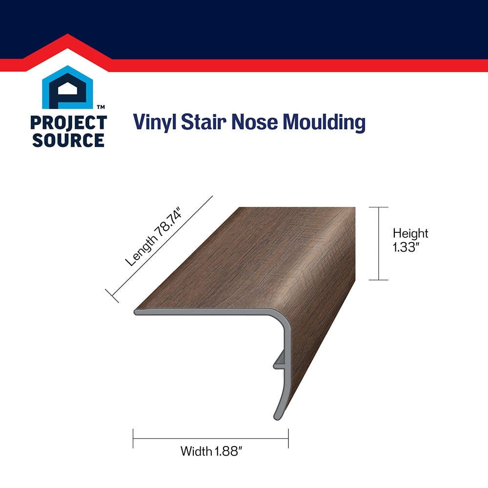 Finish stair edges with this MDF-backed vinyl stair nose molding designed to protect the front edge of steps and create a clean transition between tread and riser. Prefinished in a Ridge Line Mix wood-look to coordinate with vinyl plank floors, it installs easily as an overlap nosing and delivers durable, scratch-resistant performance.