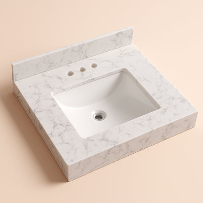 Avanity 25-in Everest White Quartz Bathroom Vanity Top with Rectangular Sink and 4-in Backsplash