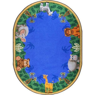 Joy Carpets Jungle Friends 5 x 8 Blue Oval Indoor Kids Area Rug