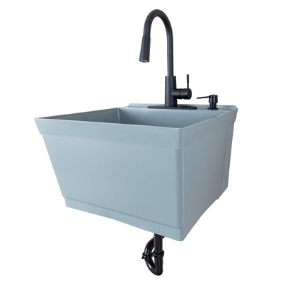 Cambridge Resources Gray Wall Mount Utility Tub with Faucet & Drain
