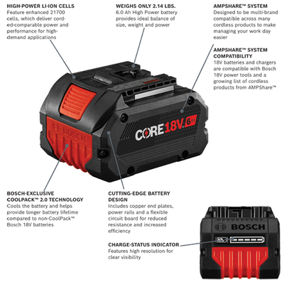 Bosch CORE18V 18V 6 Ah High Power Lithium-Ion Battery (GBA18V60)