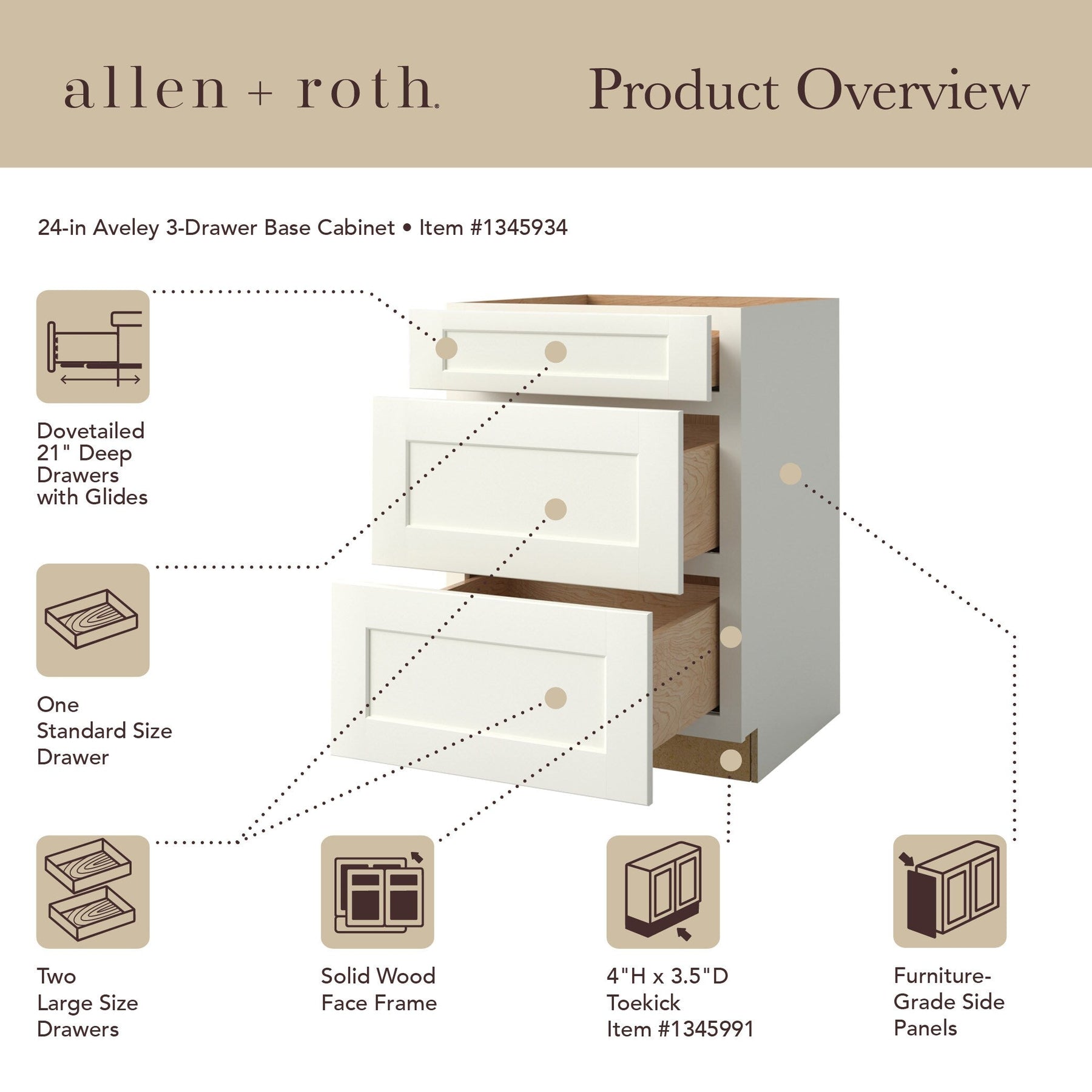 allen + roth Aveley 24-in W x 34.5-in H x 24-in D Linen 3-Drawer Base Fully Assembled Cabinet (Flat Panel Style)