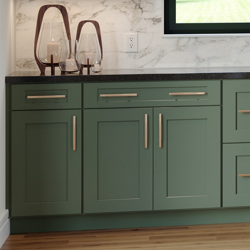 Imagine creating a kitchen oasis with the beautifully crafted Galway Base Cabinet. Its sage shade is reminiscent of a tranquil forest, offering a unique backdrop that harmonizes with nature-inspired and modern kitchens alike. The effortless soft-close feature elevates the luxury experience, while the sleek flat-panel design adds a contemporary touch. Style it with antique gold hardware to draw out its undertones, making it an indispensable piece for sophisticated living.