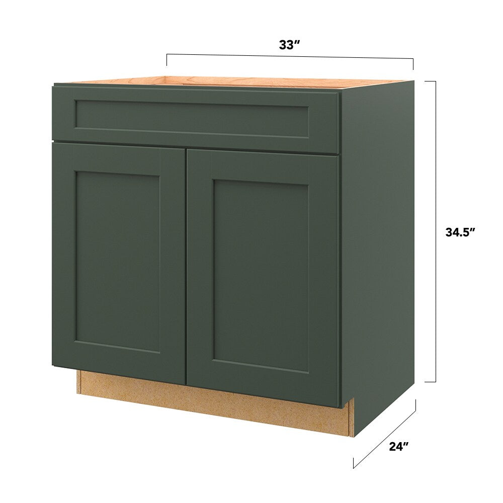 allen + roth Galway 33-in W x 34.5-in H x 24-in D Sage 1-Drawer Base Fully Assembled Cabinet (Flat Panel Shaker Style)
