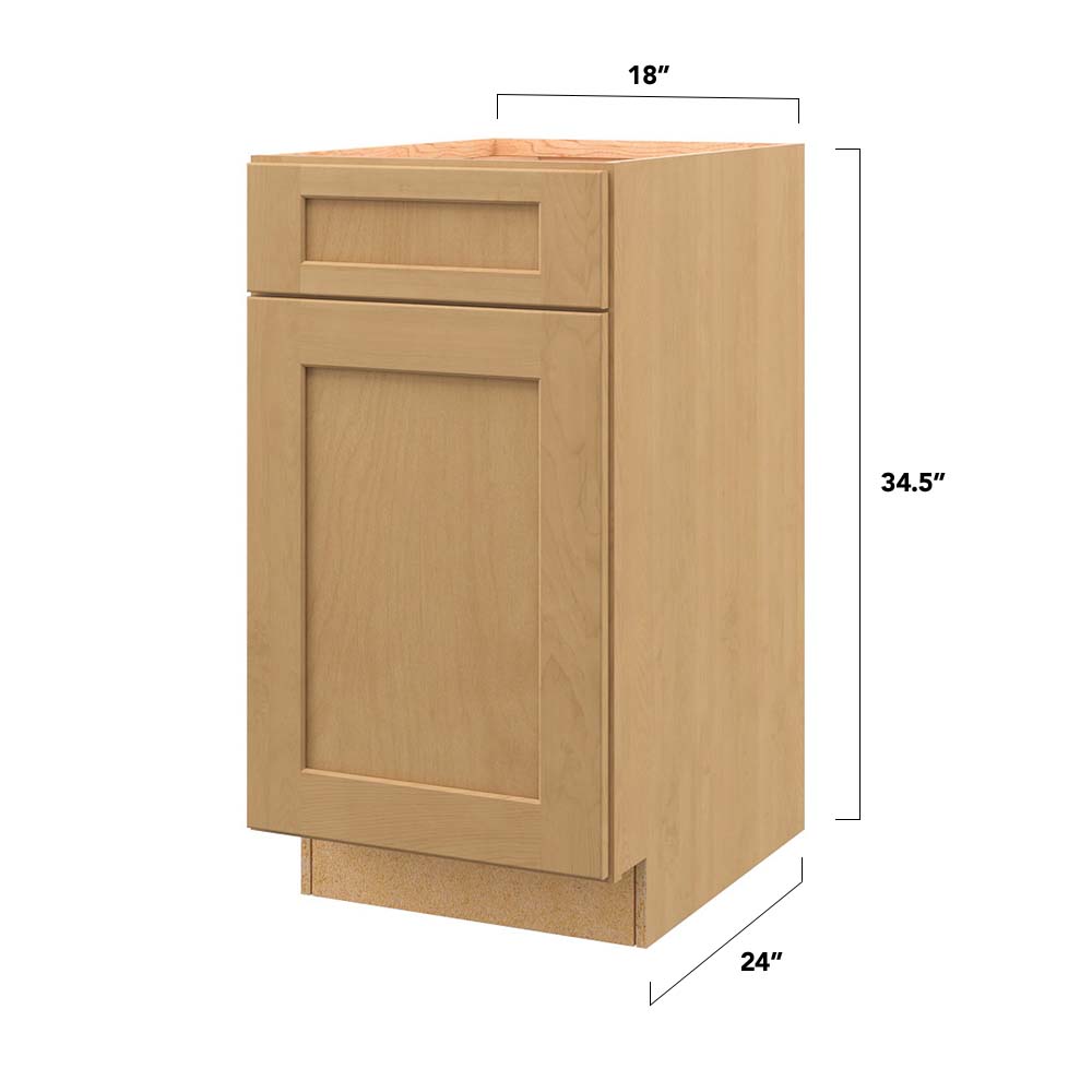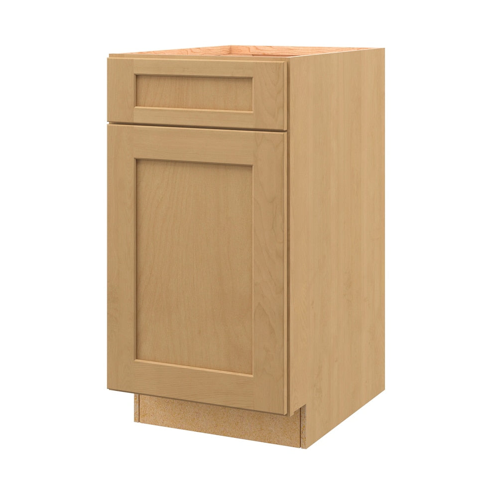 The allen + roth Innsbrook Shaker Base Cabinet brings a touch of timeless elegance to any space with its warm rye finish, effortlessly updating both modern and traditional environments. The flat panel Shaker design adds a sense of understated sophistication that beautifully complements a range of interior styles. Use it as a cornerstone in your kitchen for a two-tone look by pairing it with painted upper cabinets. With its thoughtful design and high-quality craftsmanship, it's an essential component for creating a luxurious yet inviting atmosphere.