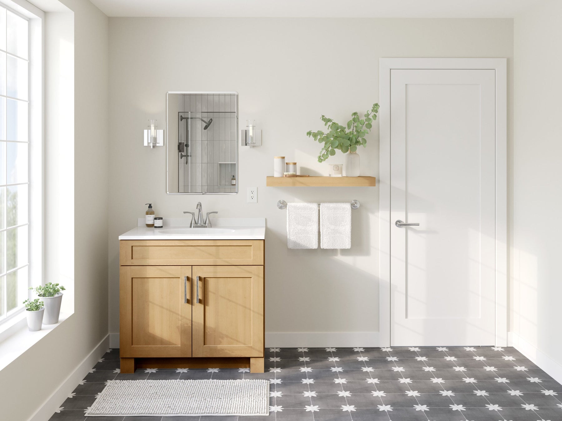 • Modern Shaker Style: Features flat panel doors with full overlay for a sleek, seamless look.