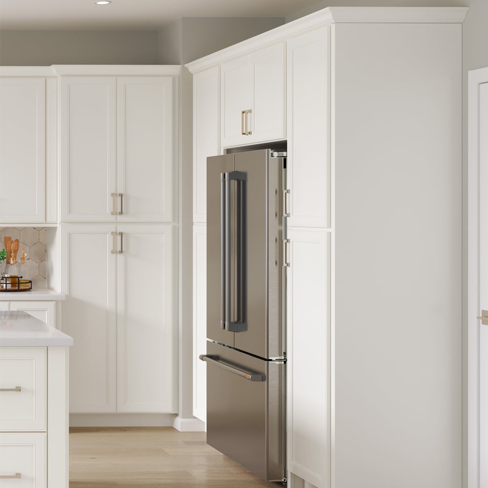 Transform your kitchen into a sanctuary of style and functionality with the McKeller Linen Pantry Cabinet. Its crisp, white transitional finish harmonizes with trendy interiors, making a subtle yet sophisticated statement. The flat panel mitered doors stand out, giving your kitchen a refined edge while seamlessly blending into contemporary designs. Incorporate it alongside open shelving for a modern, timeless look that promises both practicality and luxury. Embrace this design-forward piece as an essential component of your dream kitchen.