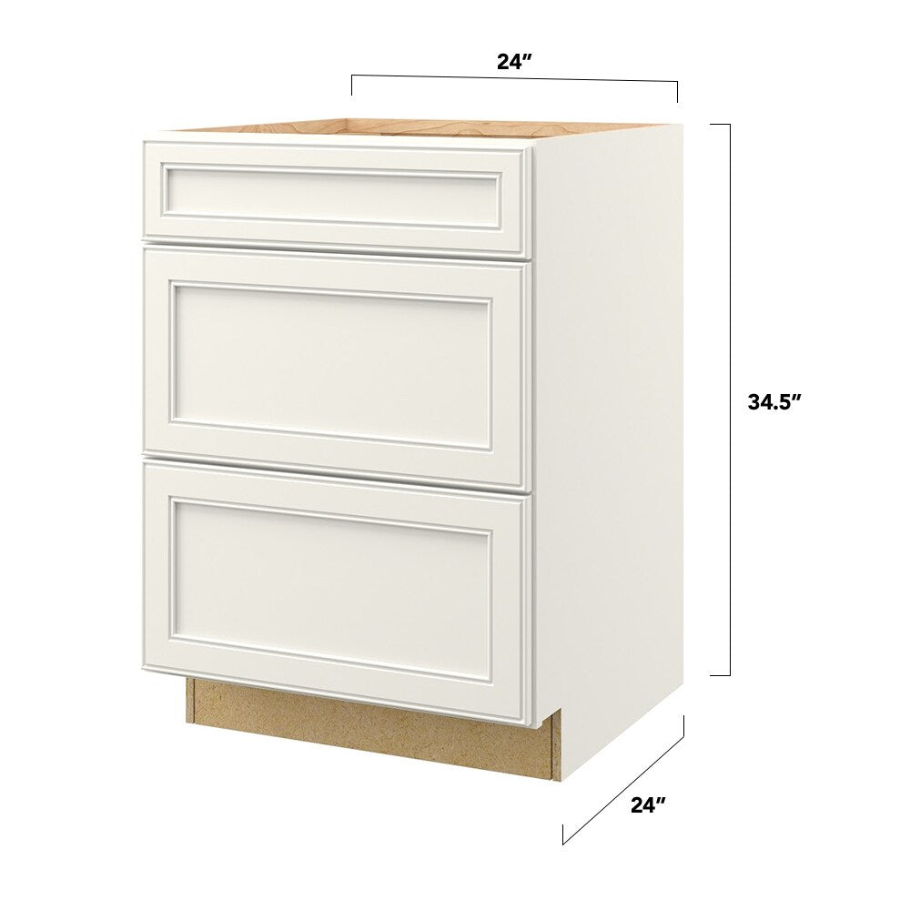 allen + roth McKeller 24-in W x 34.5-in H x 24-in D Linen 3-Drawer Base Fully Assembled Cabinet (Flat Panel Style)