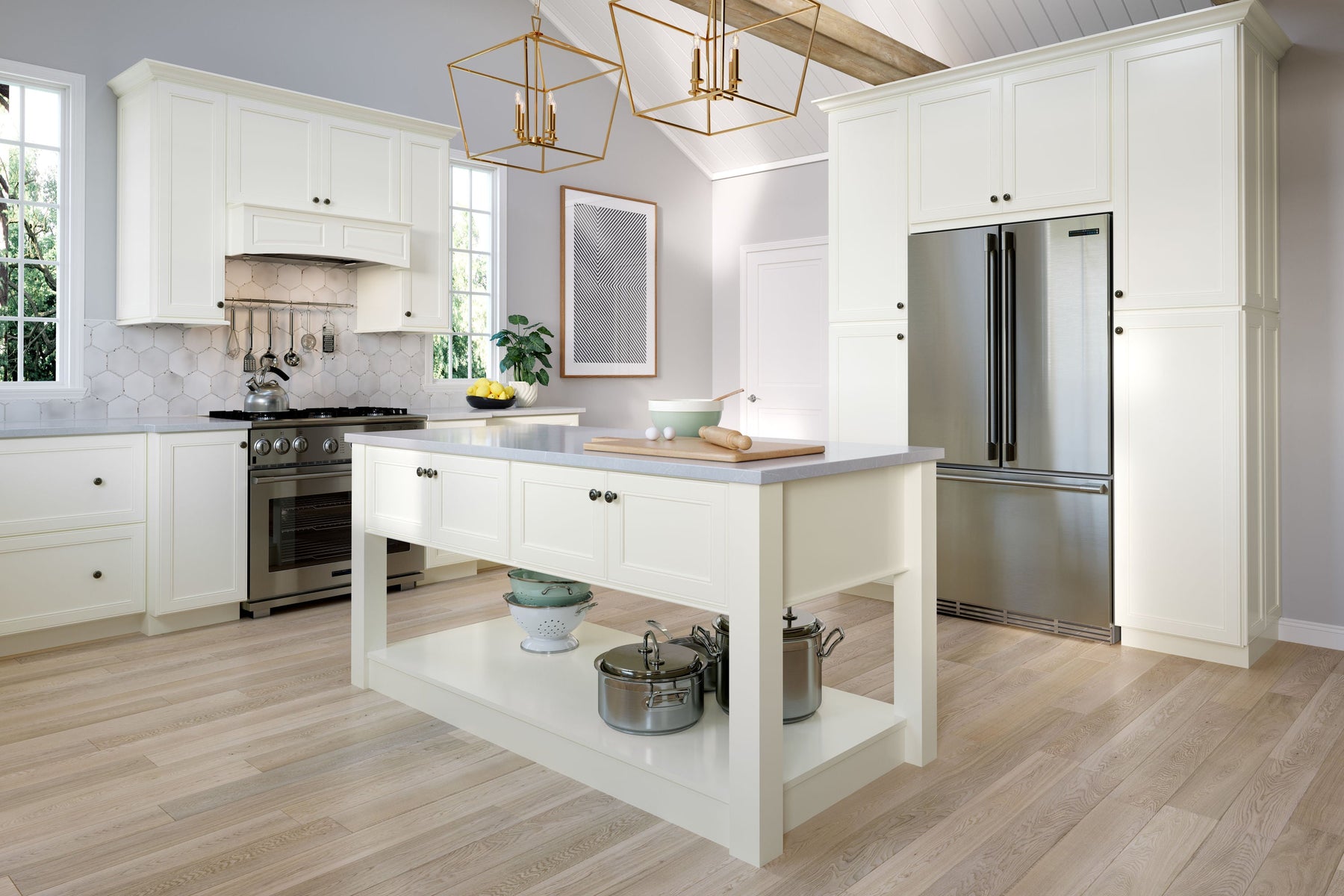 Imagine the crisp, refined lines of the McKeller Linen Cabinet transforming your kitchen into a serene sanctuary. Its luminous, linen-painted finish pairs beautifully with the gentle veining of marble countertops, creating a harmonious environment effortlessly. Style it alongside sleek stainless steel appliances for a modern yet timeless appeal. This cabinet, with its seamless doors, is an essential piece for creating a luxurious, organized space that exudes understated sophistication.