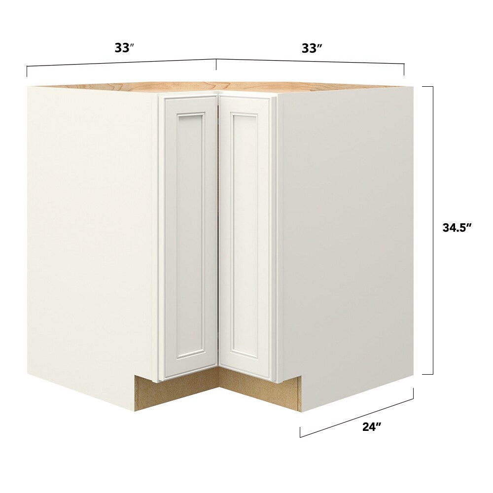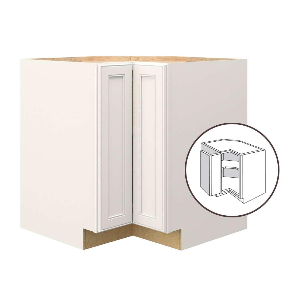 Enhance your kitchen with the allen + roth McKeller Diagonal Corner Base Cabinet. This fully assembled cabinet features a refined, seamless design with a crisp linen finish that complements any modern kitchen aesthetic. Its sturdy construction and lifetime limited warranty ensure long-lasting functionality and style.