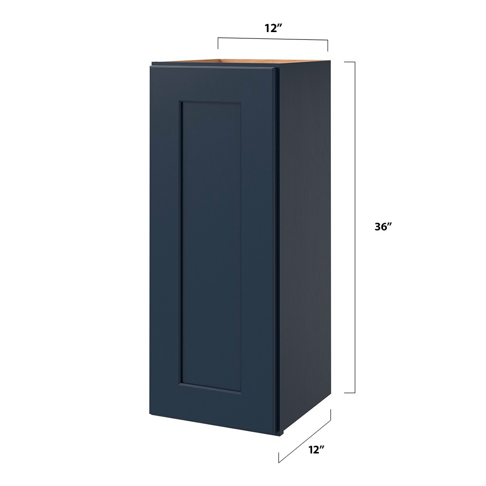 allen + roth Port 12-in W x 36.125-in H x 12-in D Navy Wall Fully Assembled Cabinet (Flat Panel Shaker Door Style)