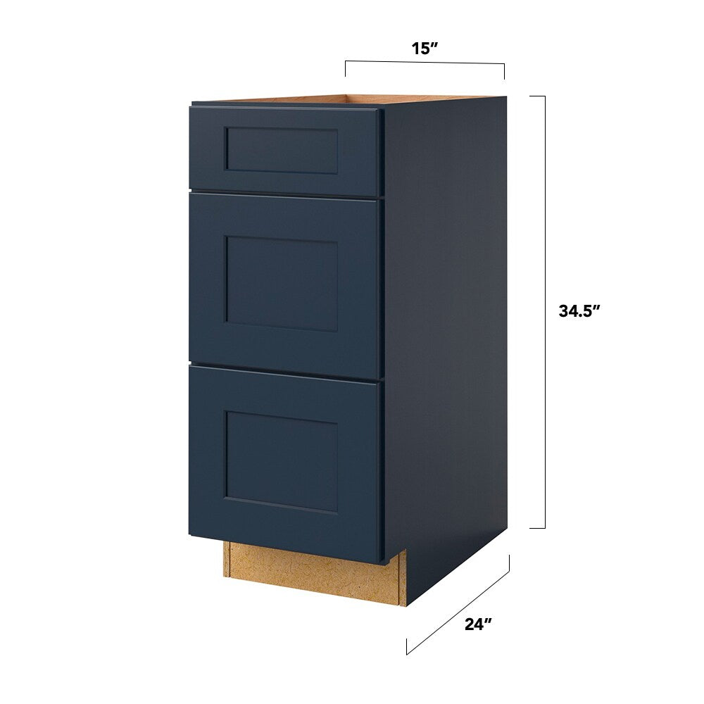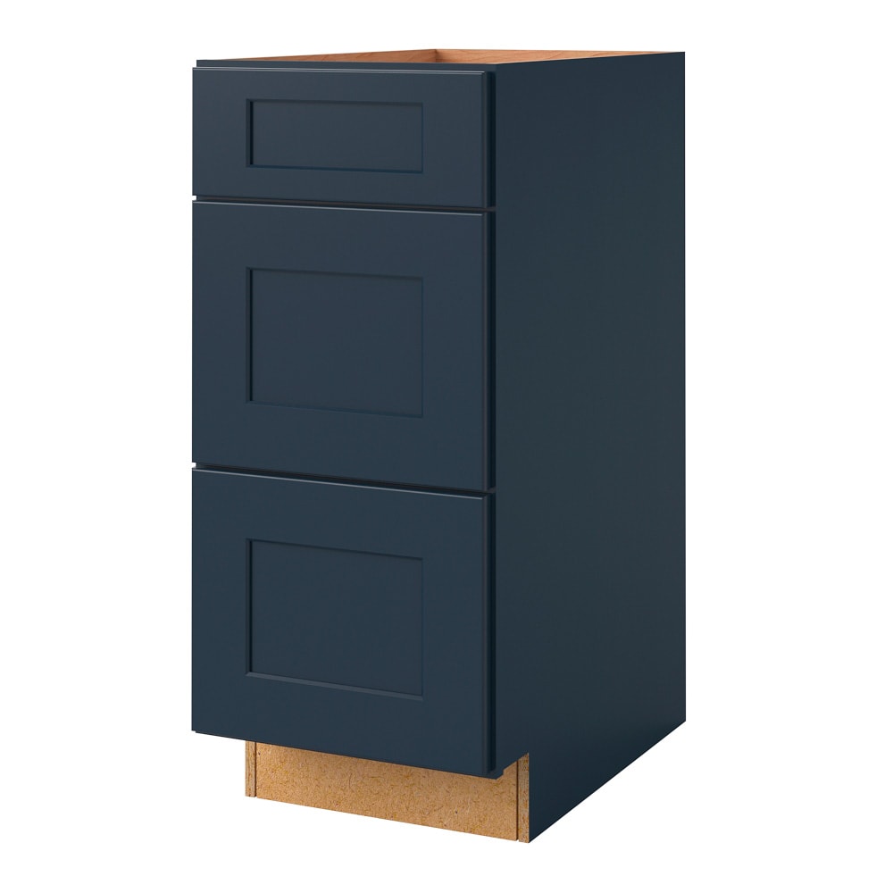 allen + roth Port 15-in W x 34.5-in H x 24-in D Navy 3-Drawer Base Fully Assembled Cabinet (Flat Panel Style)