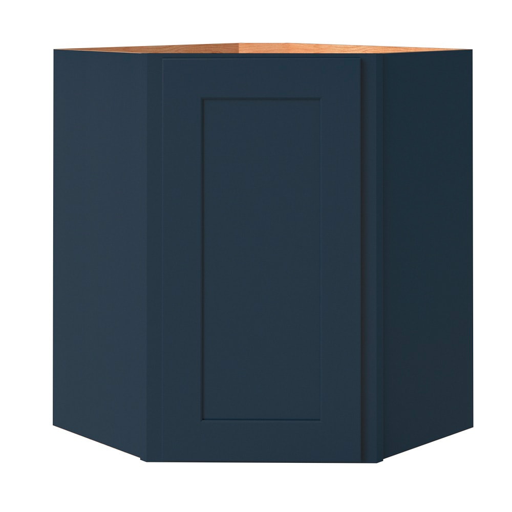 allen + roth Port 24-in W x 36.125-in H x 12-in D Navy Diagonal Corner Wall Fully Assembled Cabinet (Flat Panel Shaker Style)