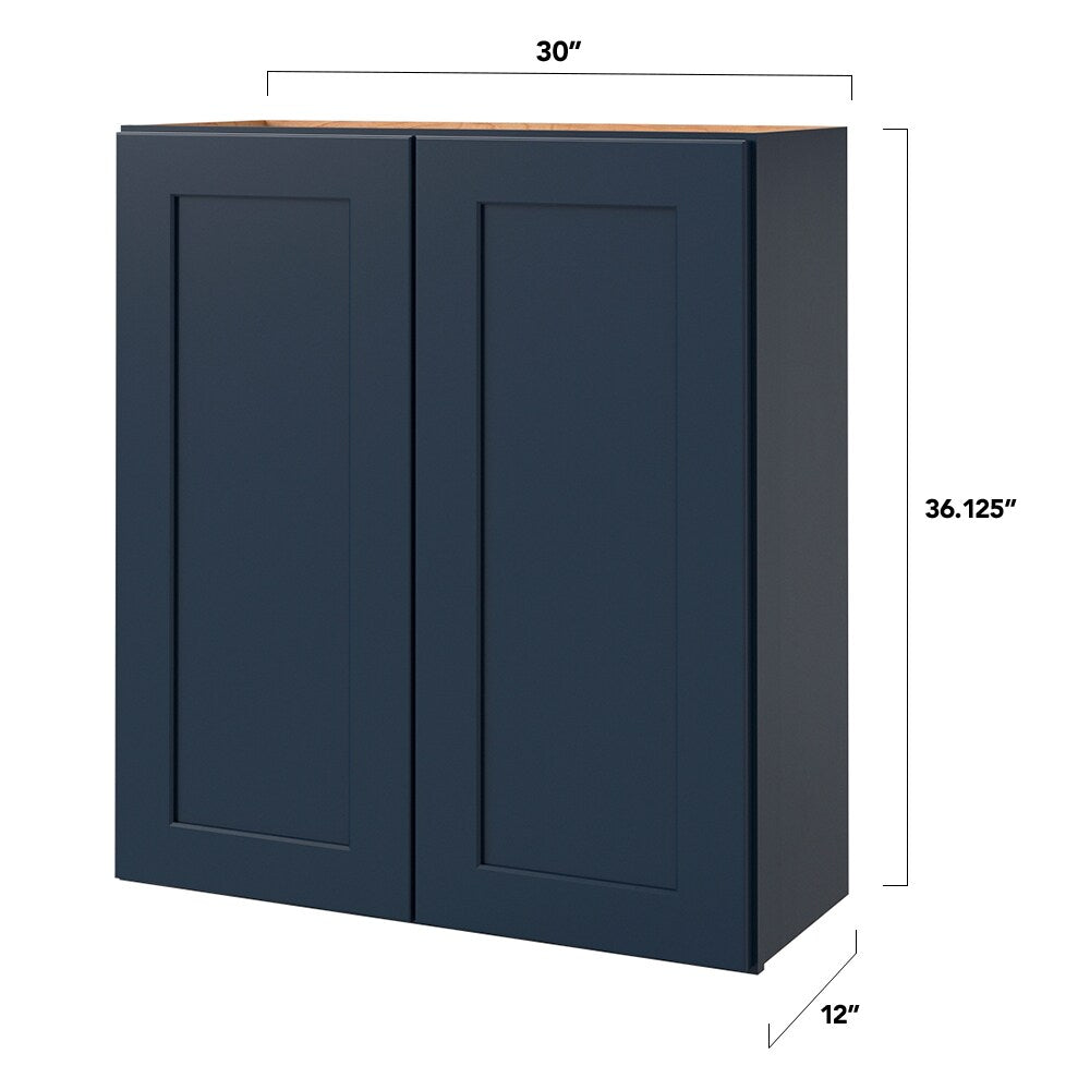 allen + roth Port 30-in W x 36.125-in H x 12-in D Navy Wall Fully Assembled Cabinet (Flat Panel Shaker Door Style)